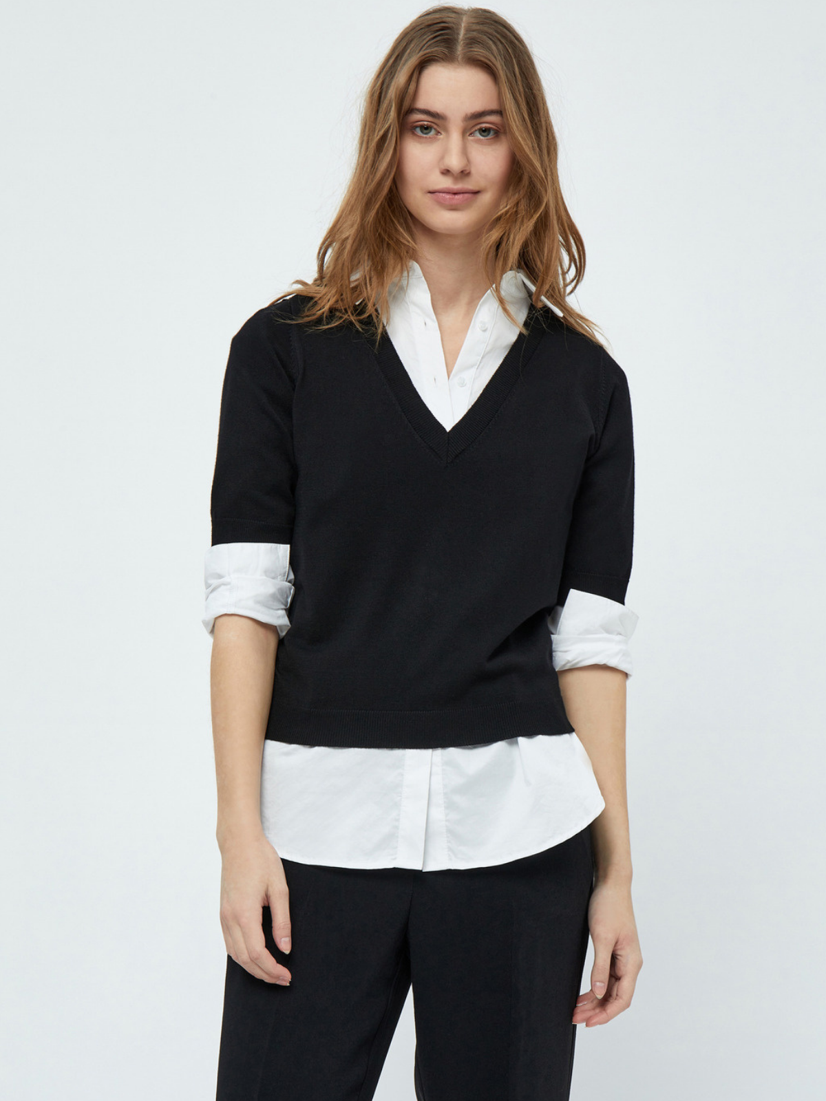 The Milla knit t-shirt is crafted from a mix of the sustainable alternative to viscose, Eco Vero, and elastane, giving the t-shirt a stretchy and soft quality. The t-shirt has half sleeves and a flattering v-neckline.