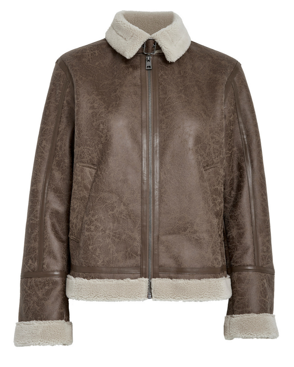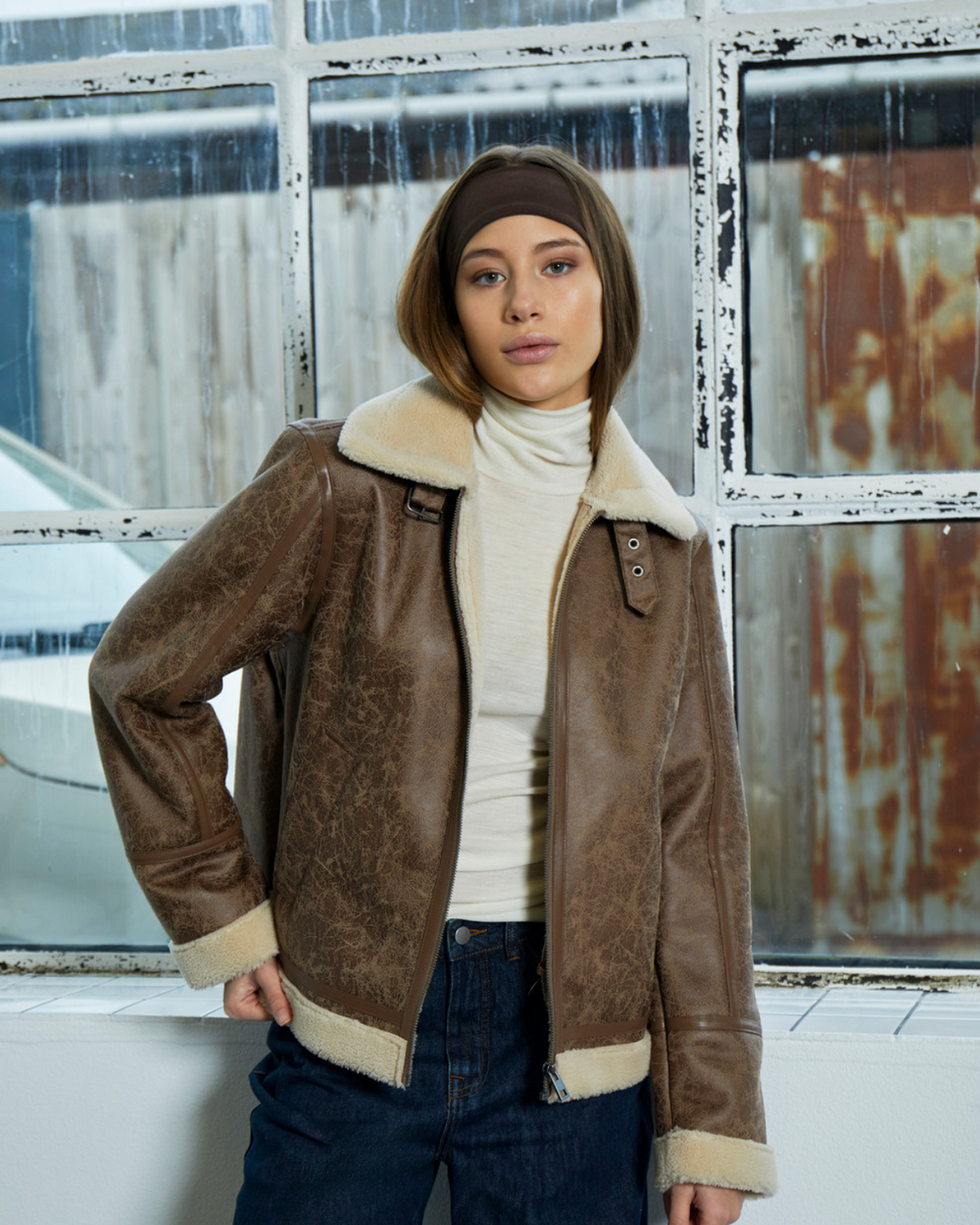Blouson aviateur en faux cuir avec poches latérales et doublure en peluche