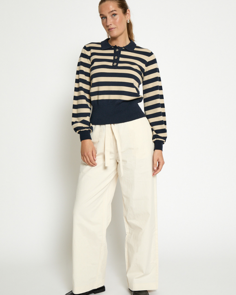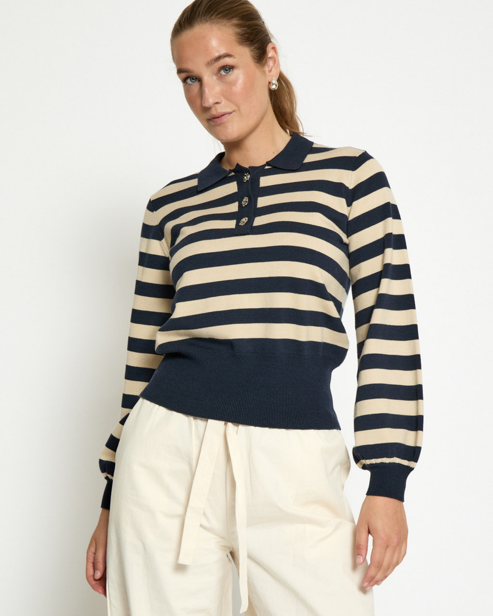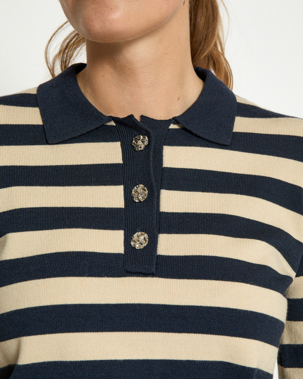 Pull rayé à col polo, détails côtelés à l'ourlet et aux poignets.