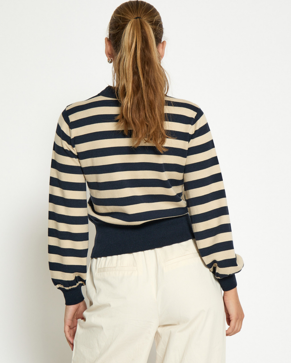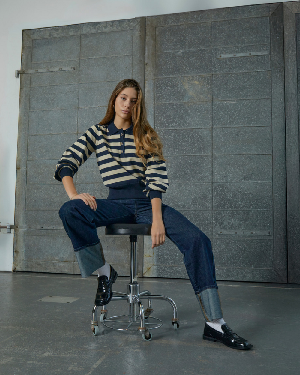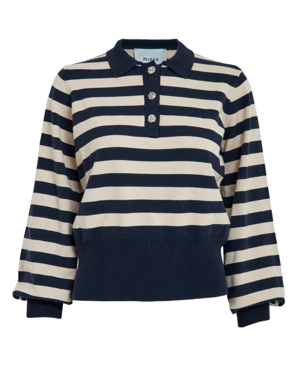 Pull rayé à col polo, détails côtelés à l'ourlet et aux poignets.