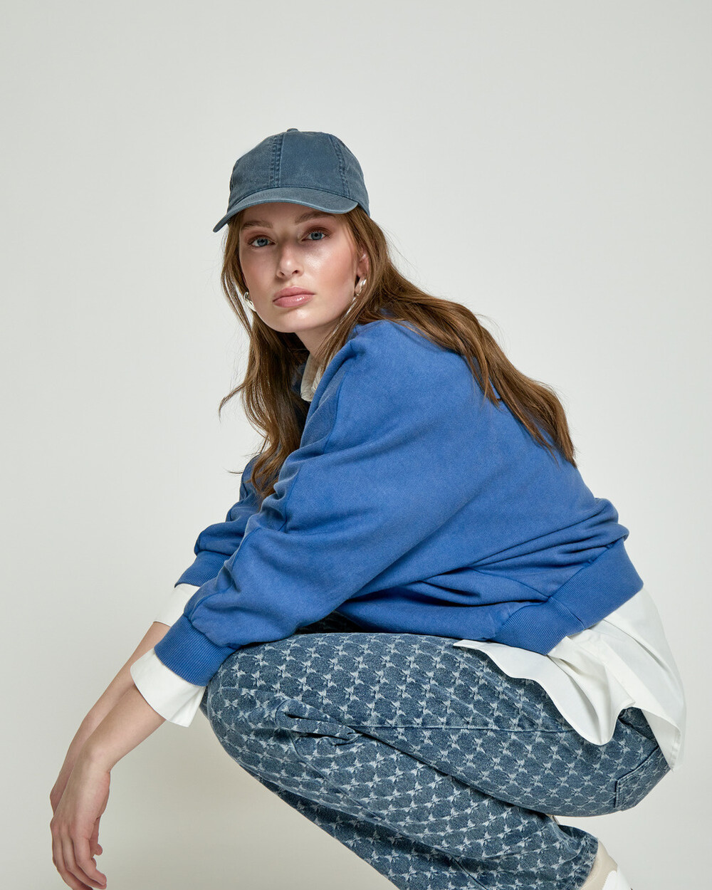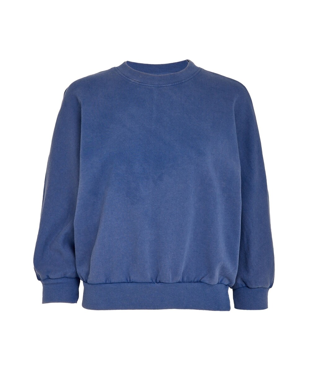 Sweat-shirt en coton à col rond, délavé, manches 3/4 et détails côtelés aux poignets et à l'ourlet.