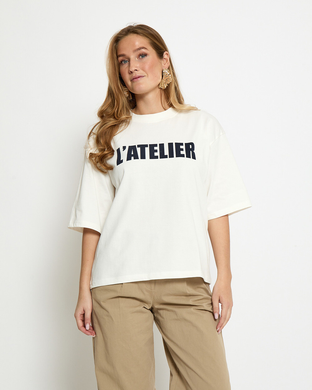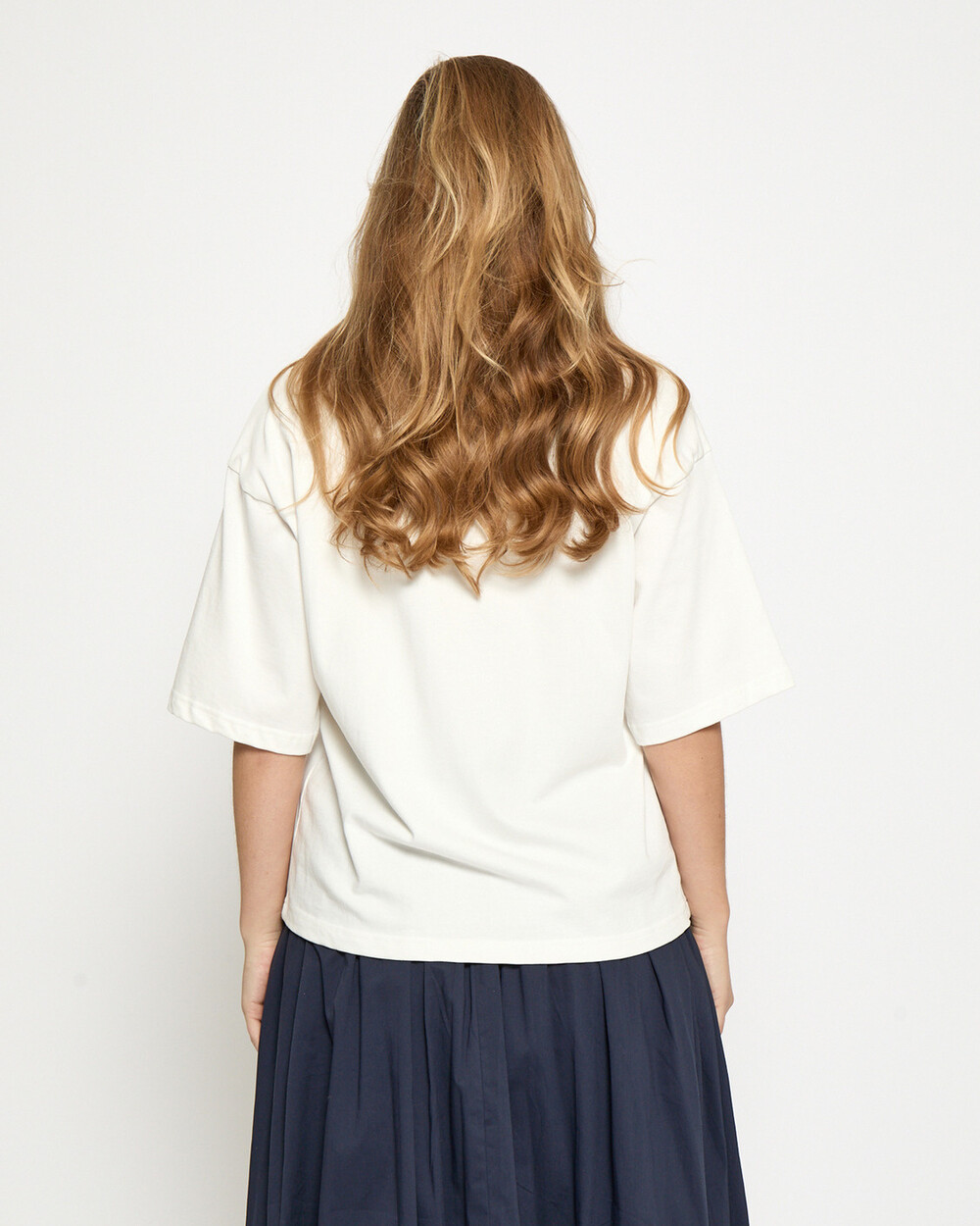 T-shirt surdimensionné à col rond avec imprimé contrasté sur le devant, confectionné en coton biologique doux.