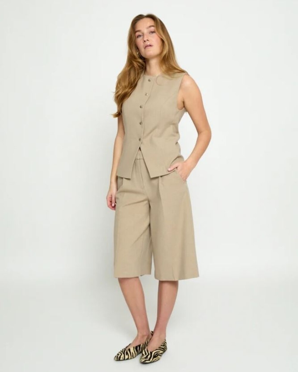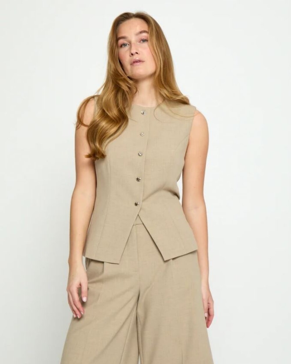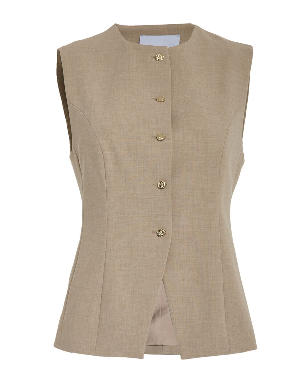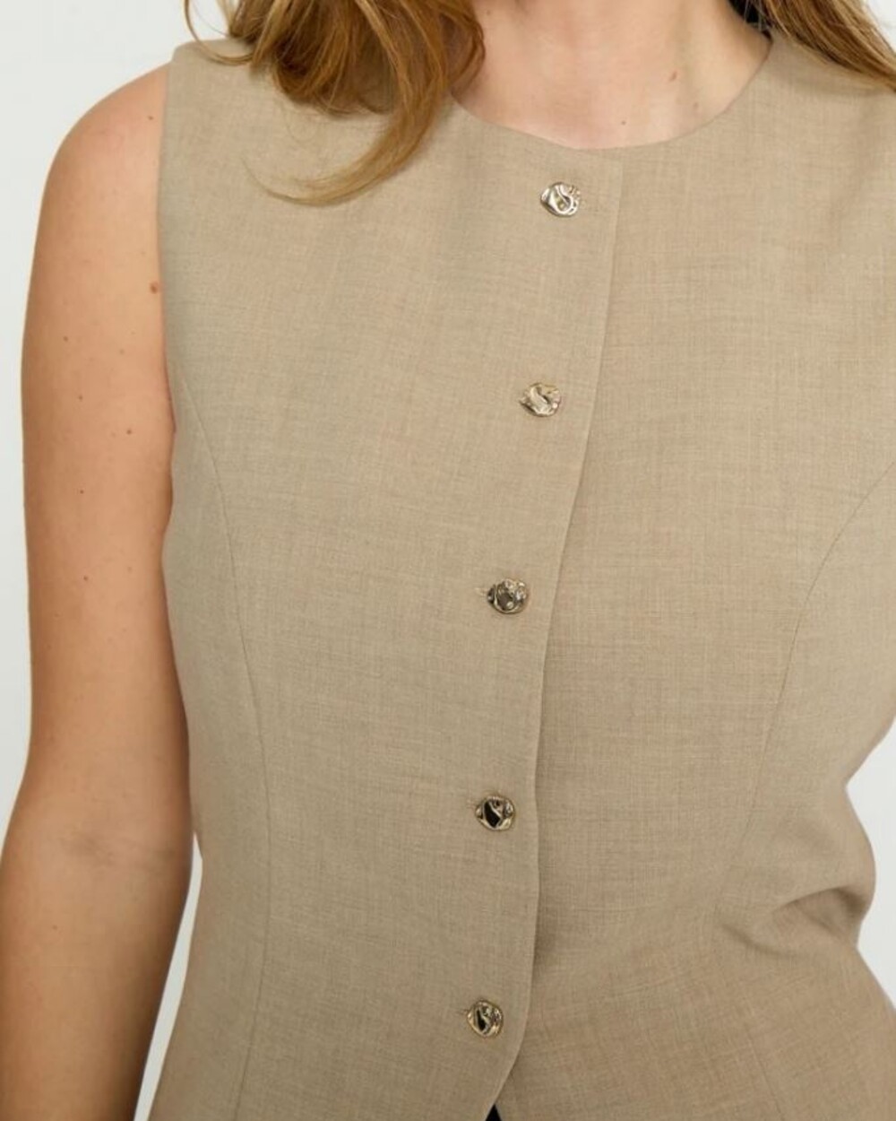 Gilet ajusté à col rond, orné de boutons décoratifs sur le devant. À associer à notre BERMUDAS MSFAMEY assorti pour compléter le look !
