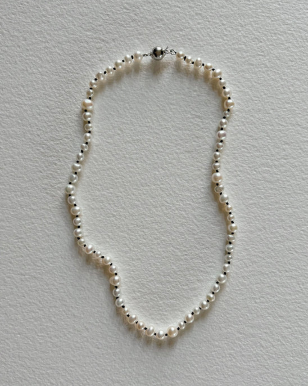 Matériaux: Perles d’eau douce sur un fil de soie noir avec fermoir en argent 925
