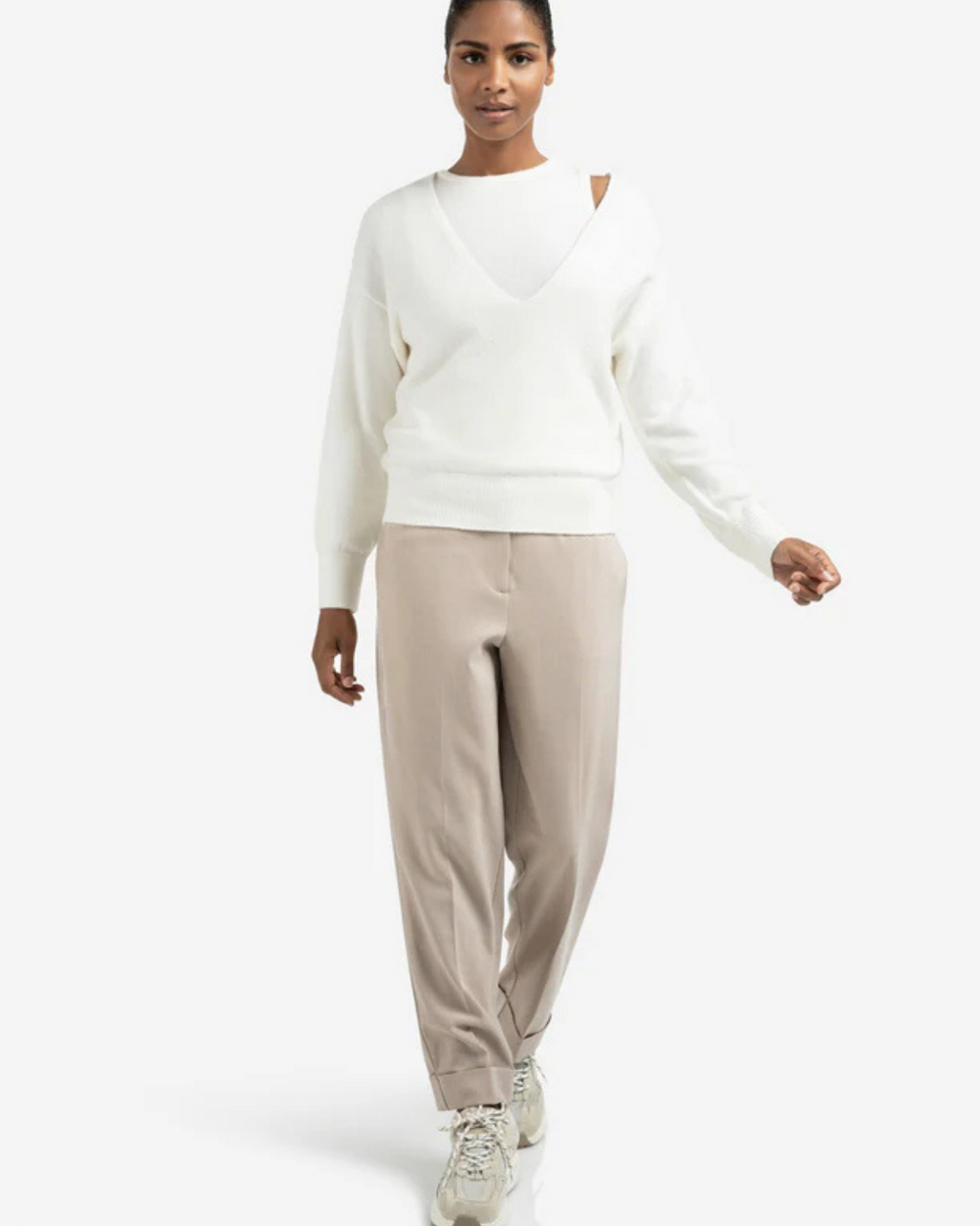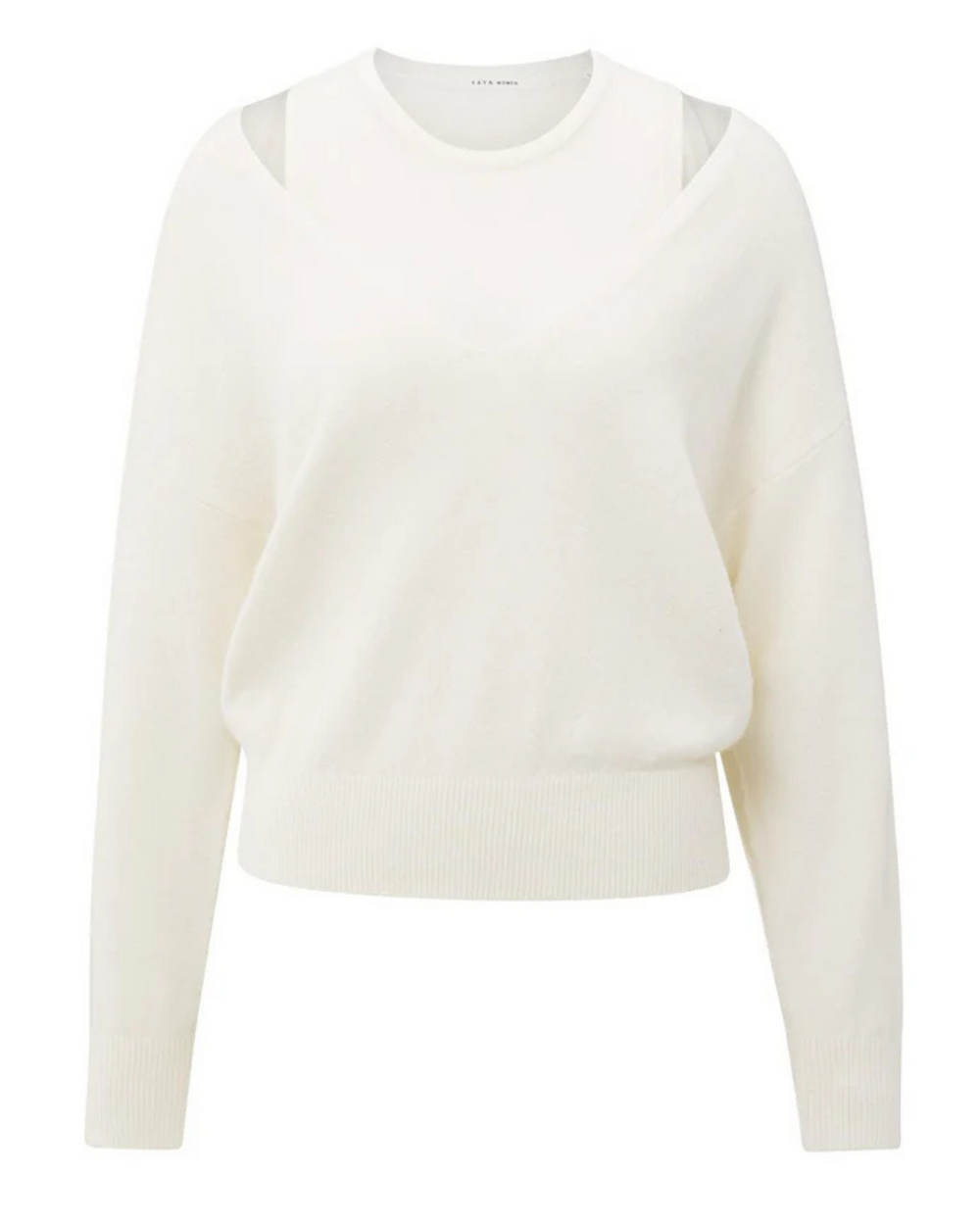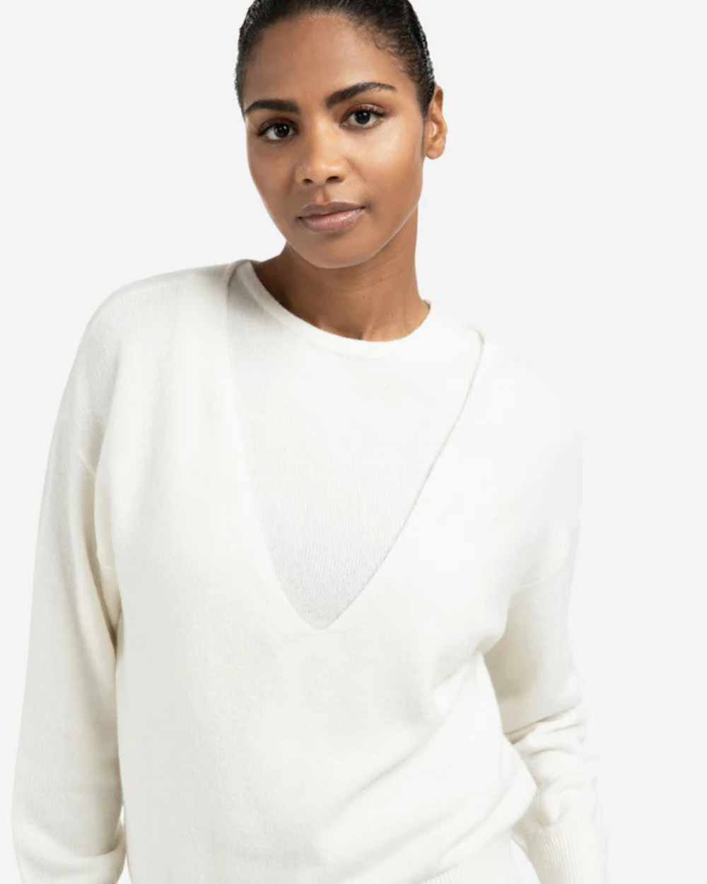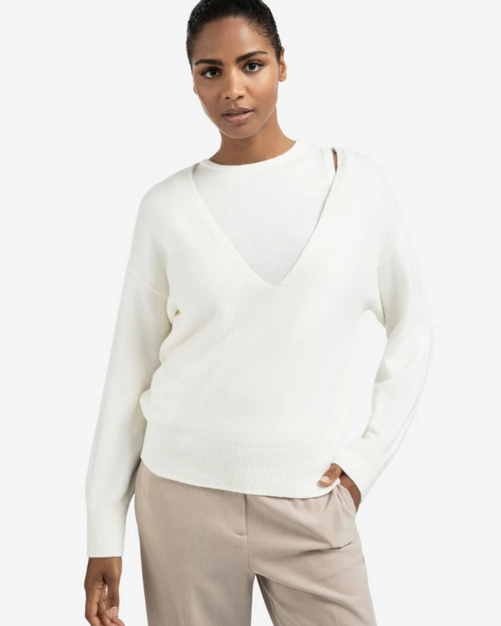 Deep v-neck sweater with singlet top.