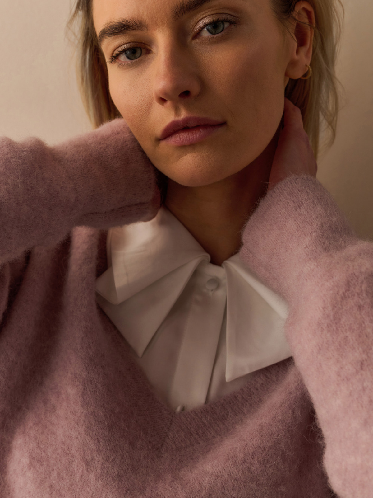 Blouse with bow collar