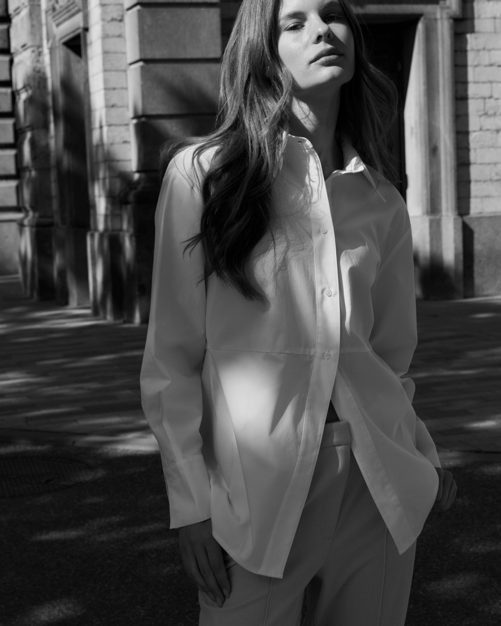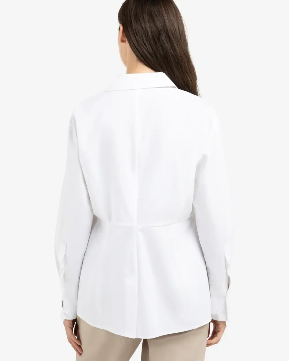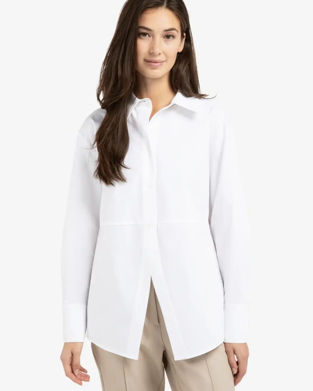 A-line button up poplin long sleeve blouse