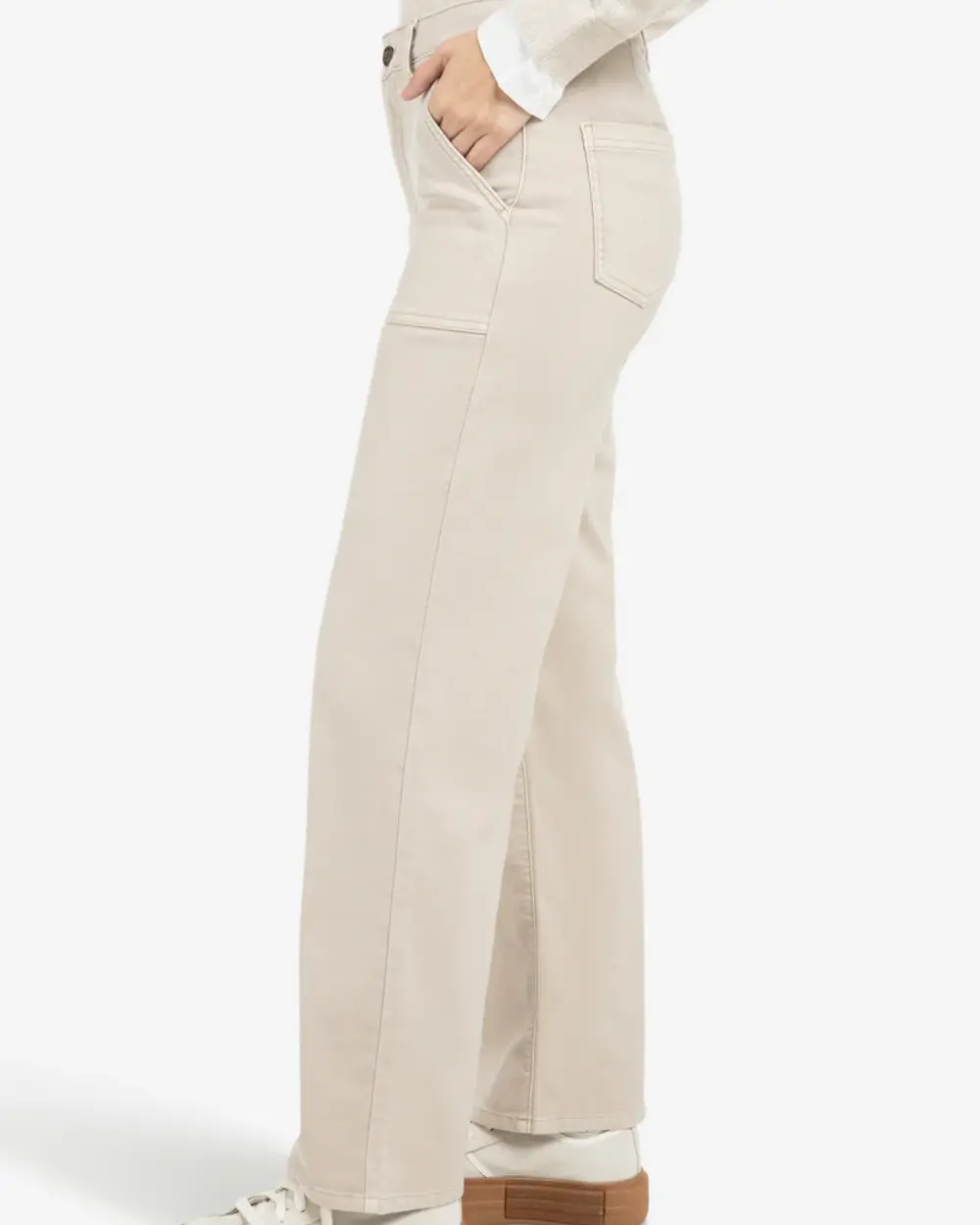 Straight leg, mid rise, comfort stretch