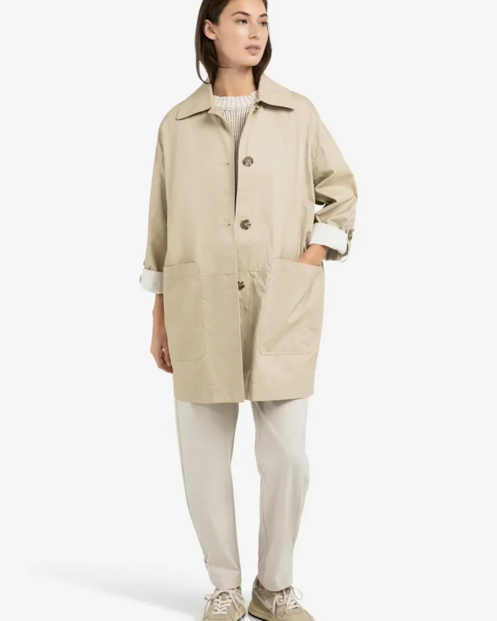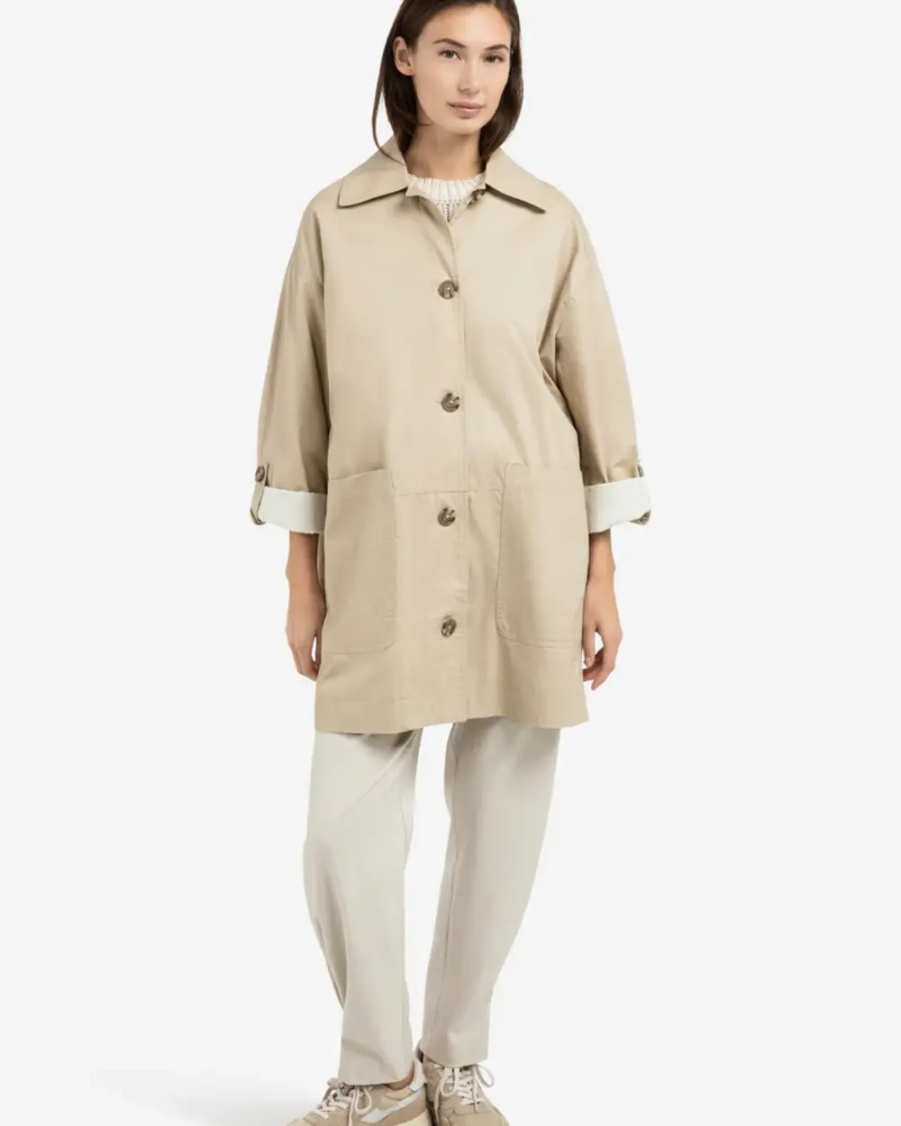 Oversized cotton mid length jacket