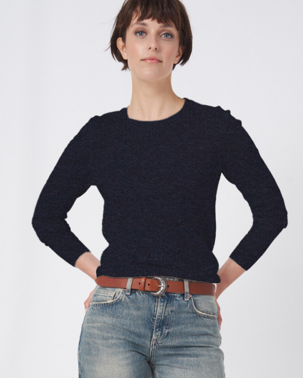 Long sleeve crewneck sweater.