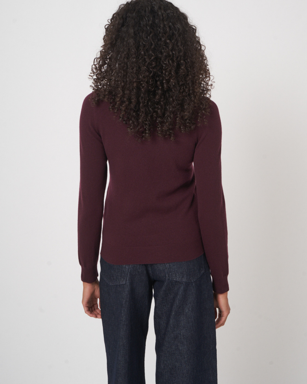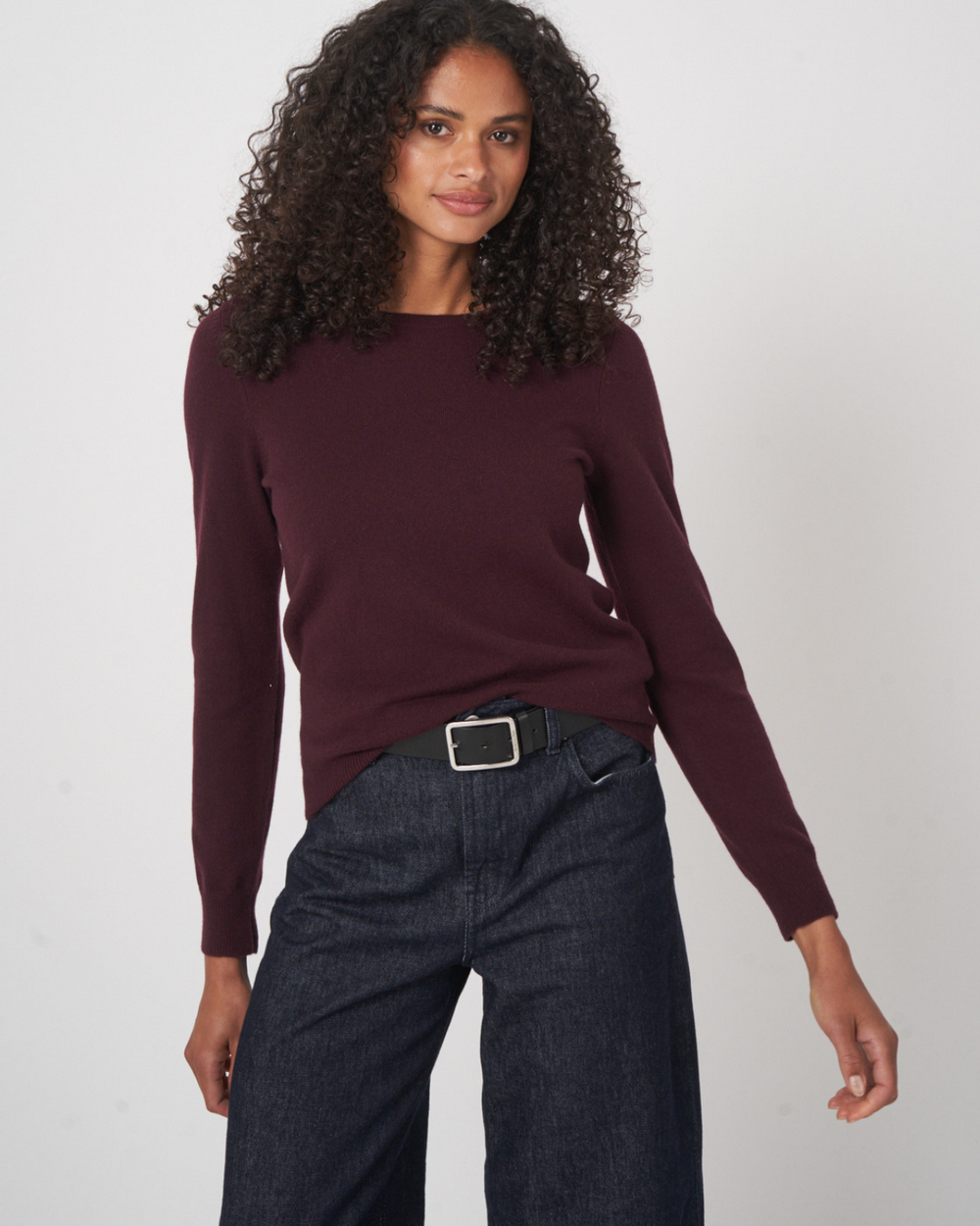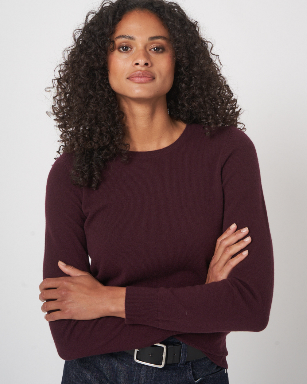 Long sleeve crewneck sweater with contoured ribbed hem.