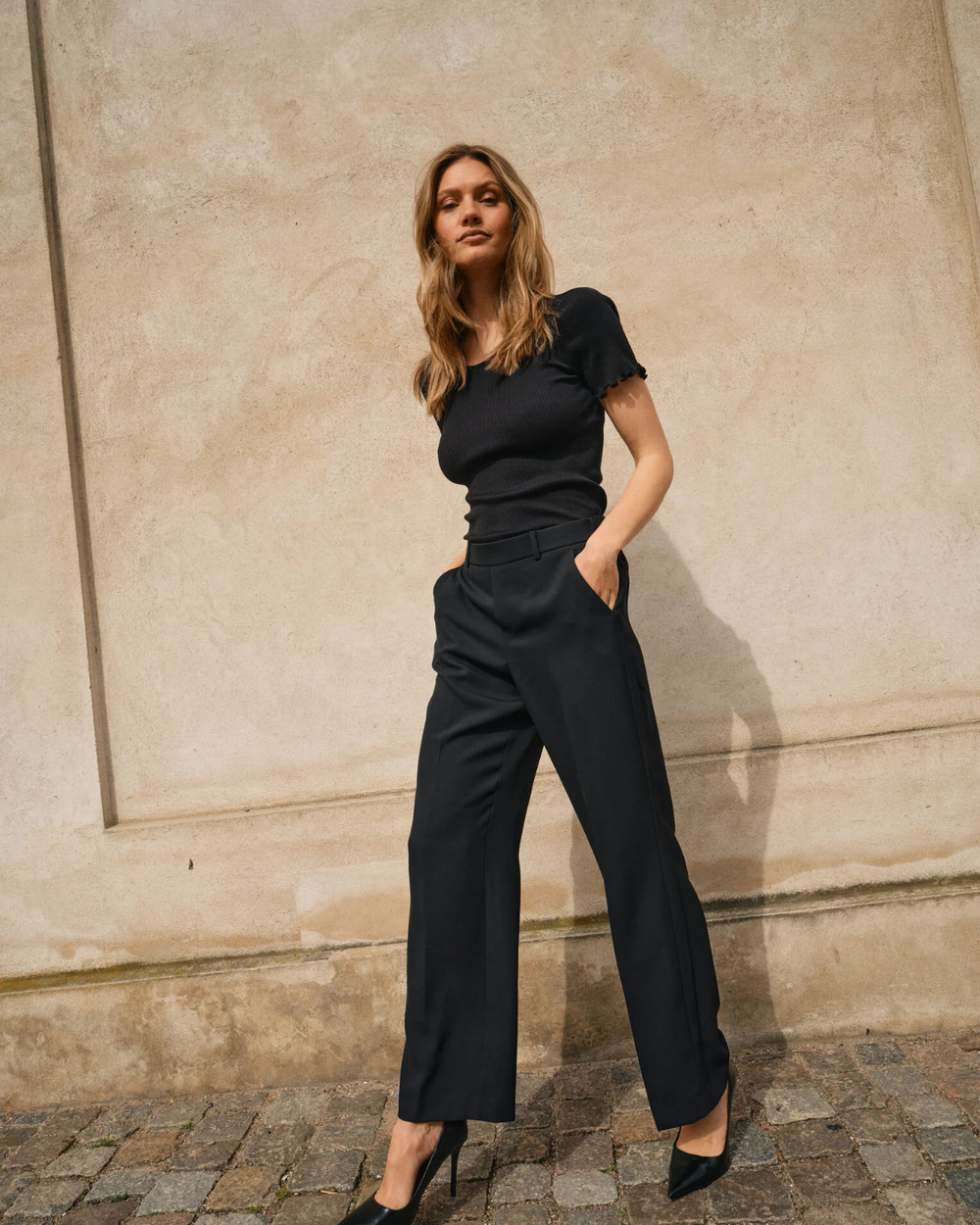 These timeless tailored pants are designed in a flattering straight fit with a mid/high-rise, offering both elegance and versatility. Detailed with pressed creases and a concealed zipper for a polished finish.