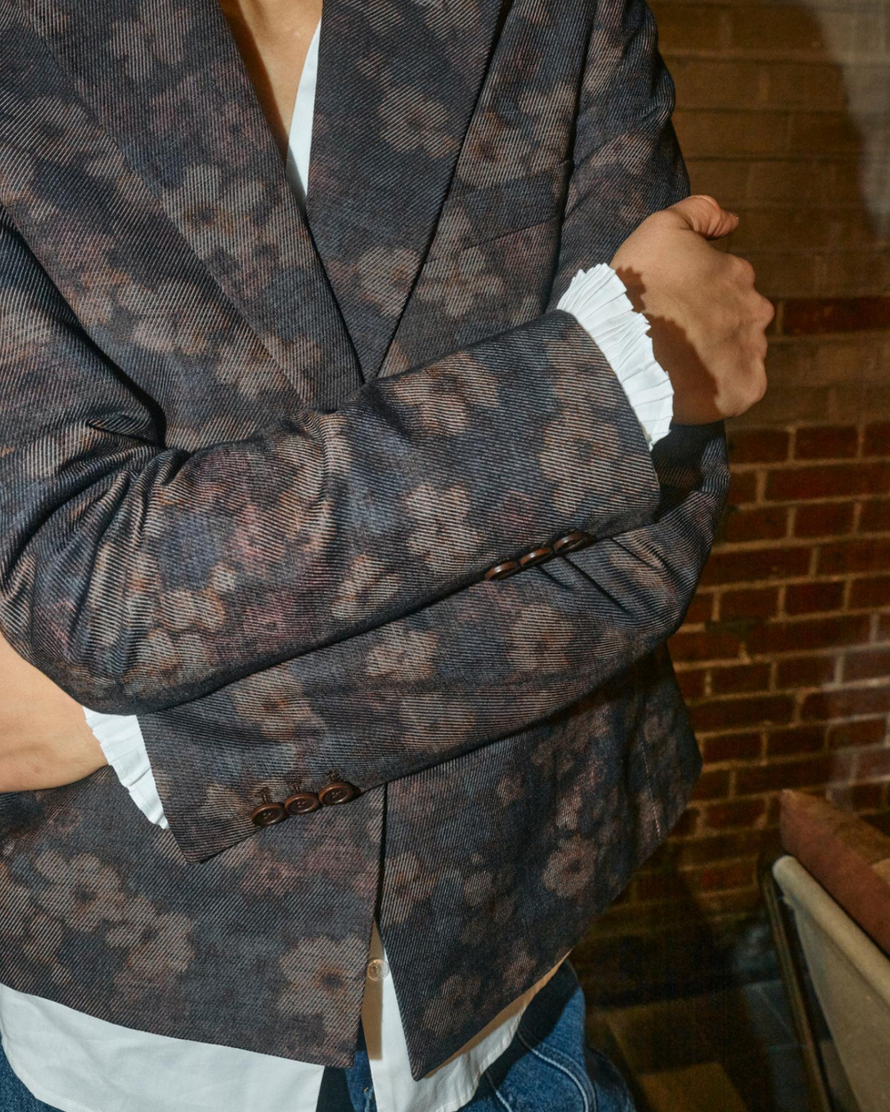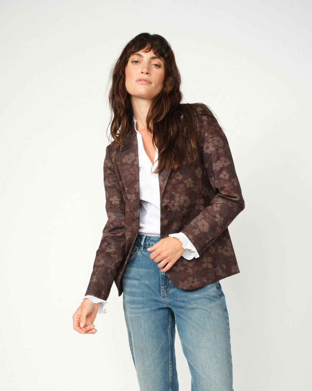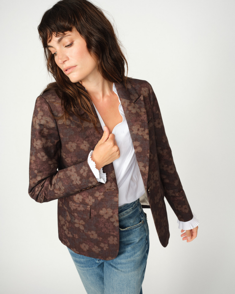 Single-breasted blazer made of Italian fabric with front flap pockets and button cuffs.