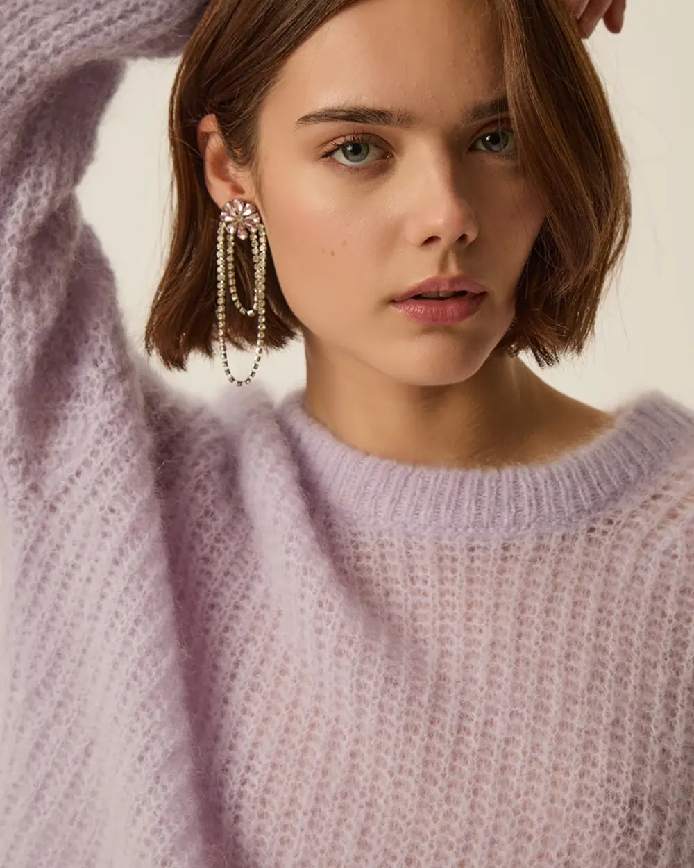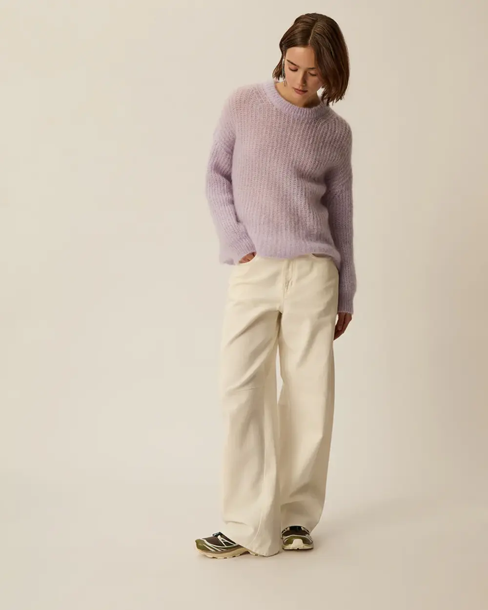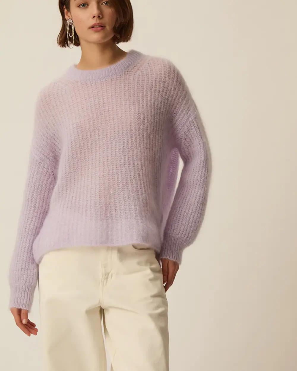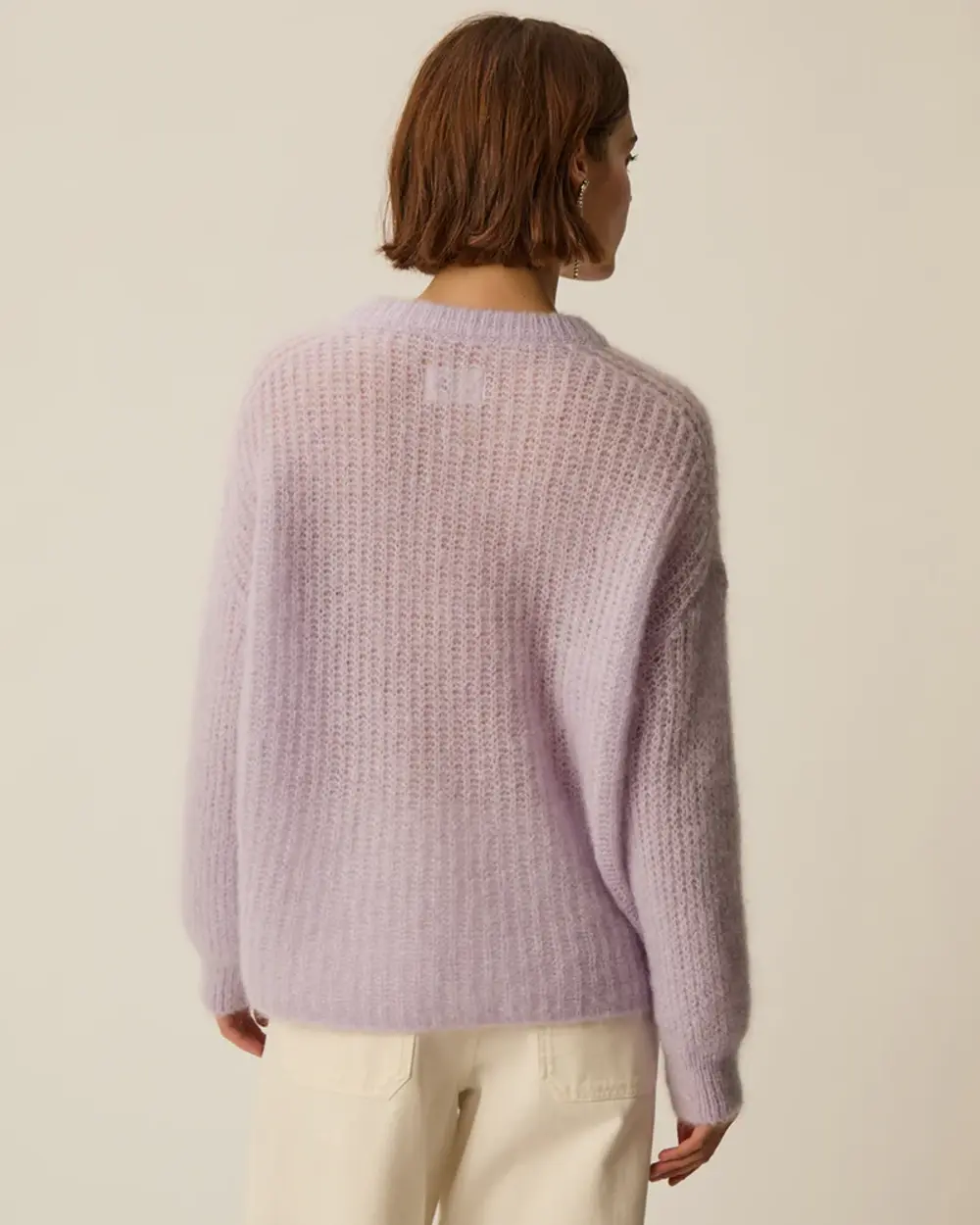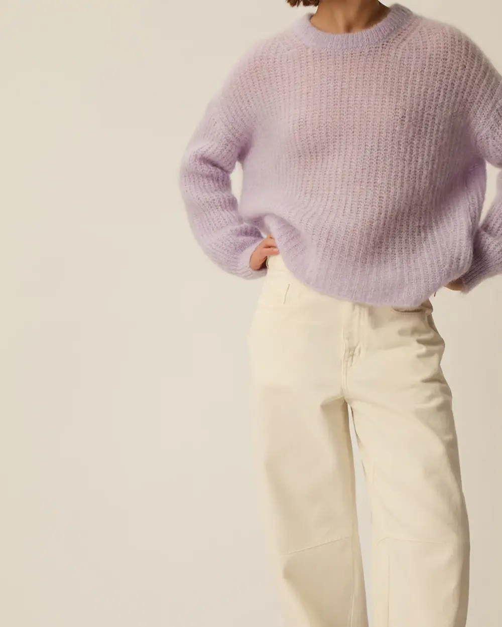 Relaxed fit crew neck pullover, knitted from a soft kidmohair blend yarn.