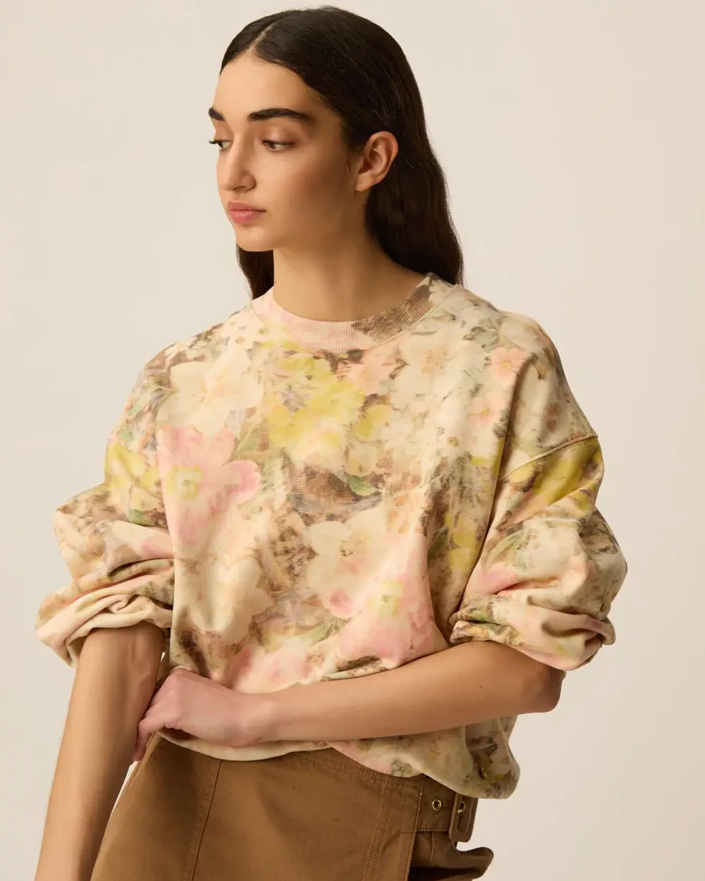 Relaxed fit crew neck sweatshirt, made of a soft cotton with an unique flower print.