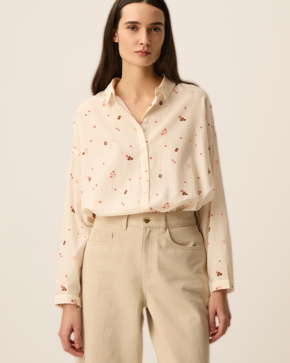 Relaxed fit long sleeve shirt, made of soft cotton with an unique ocean theme embroidery.