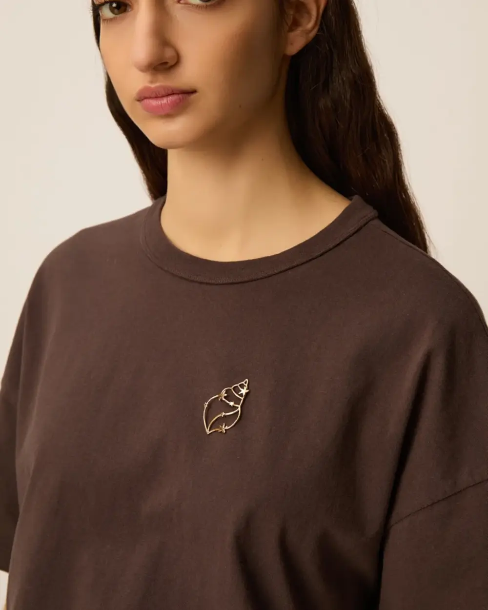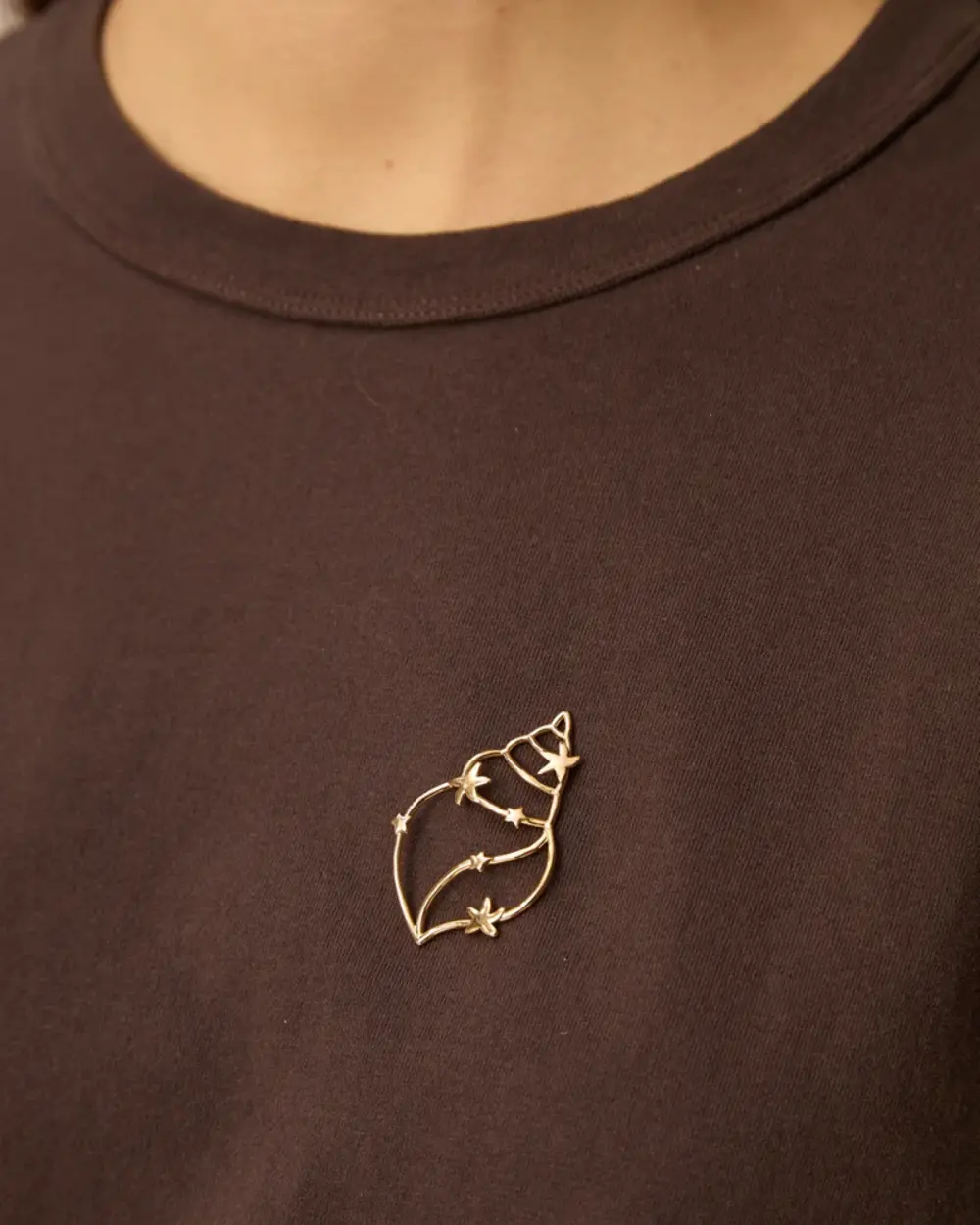 Cute shell shaped brooch pin. Style it with your favorite DPH piece of the season!