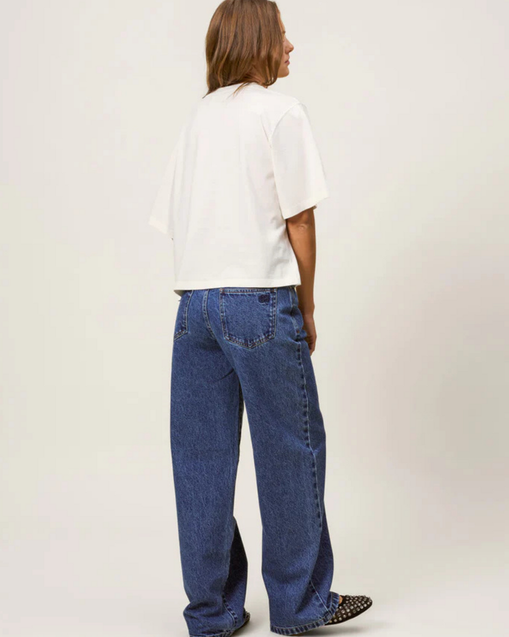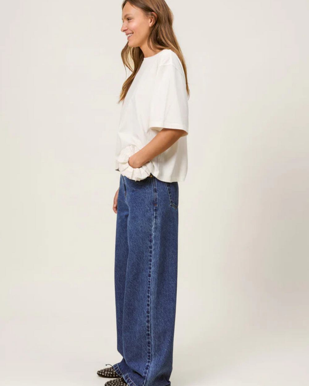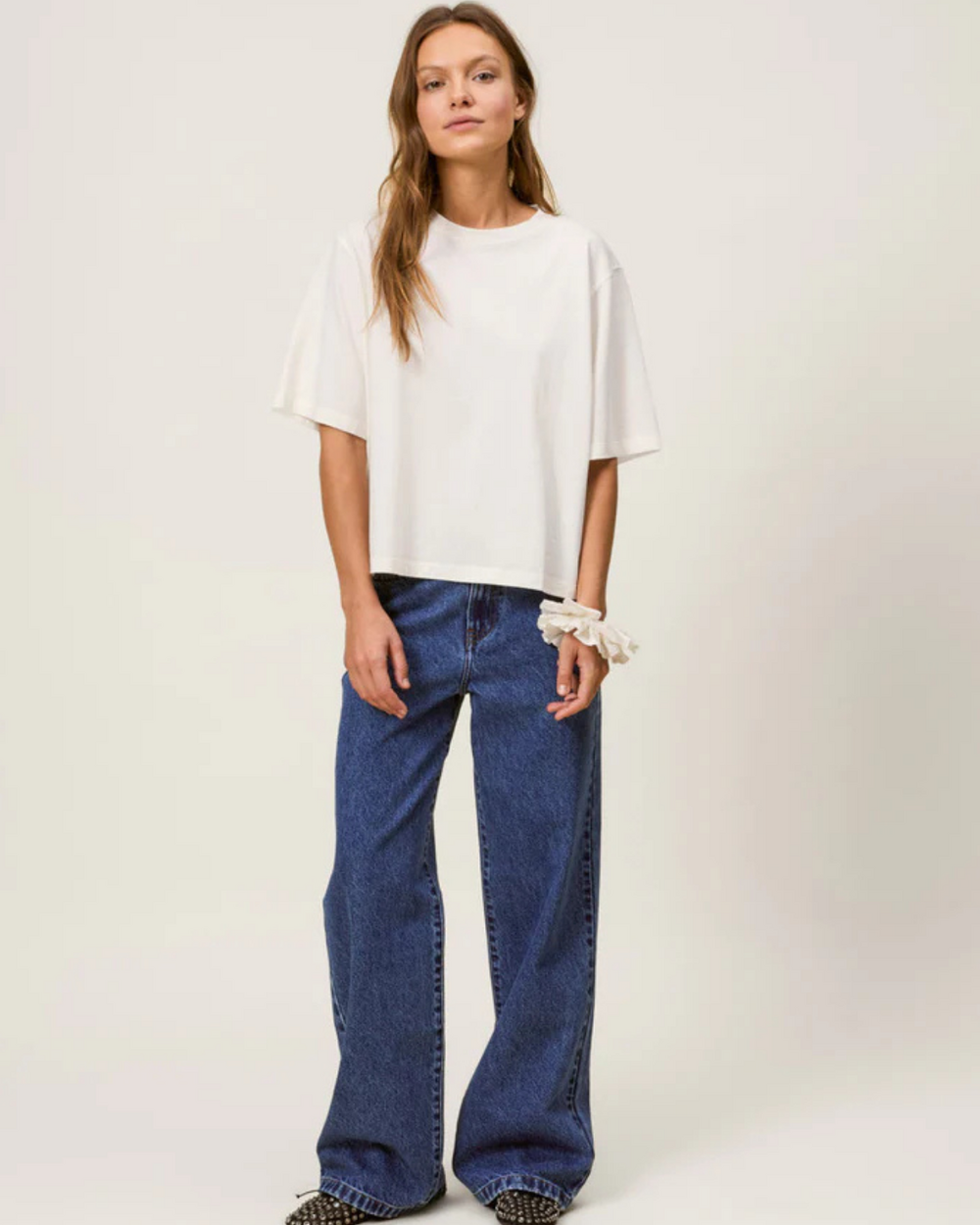 Oversized t-shirt that is slightly cropped. Perfectly paired with high waisted bottoms.