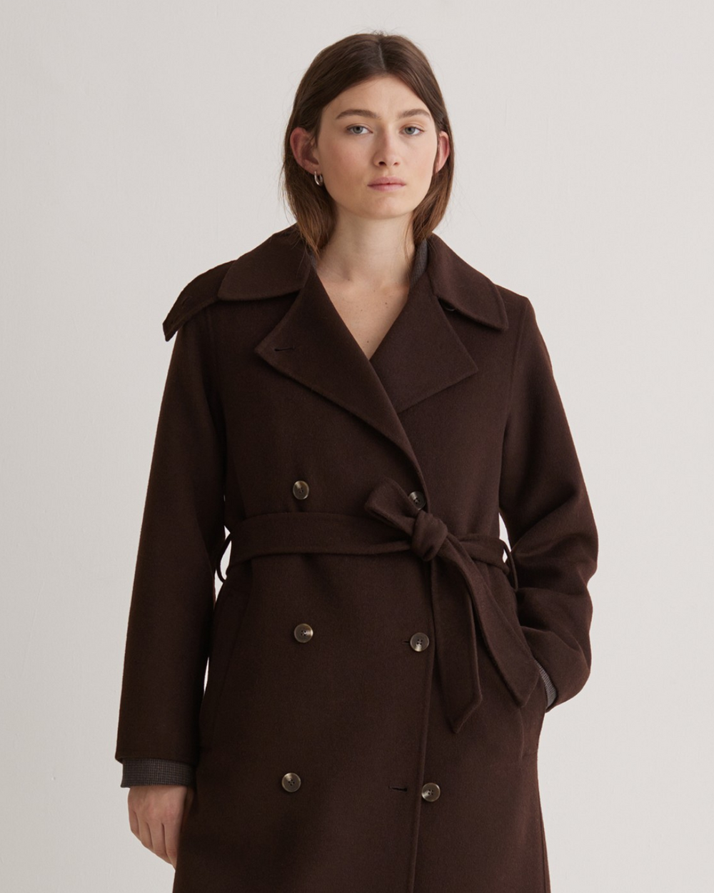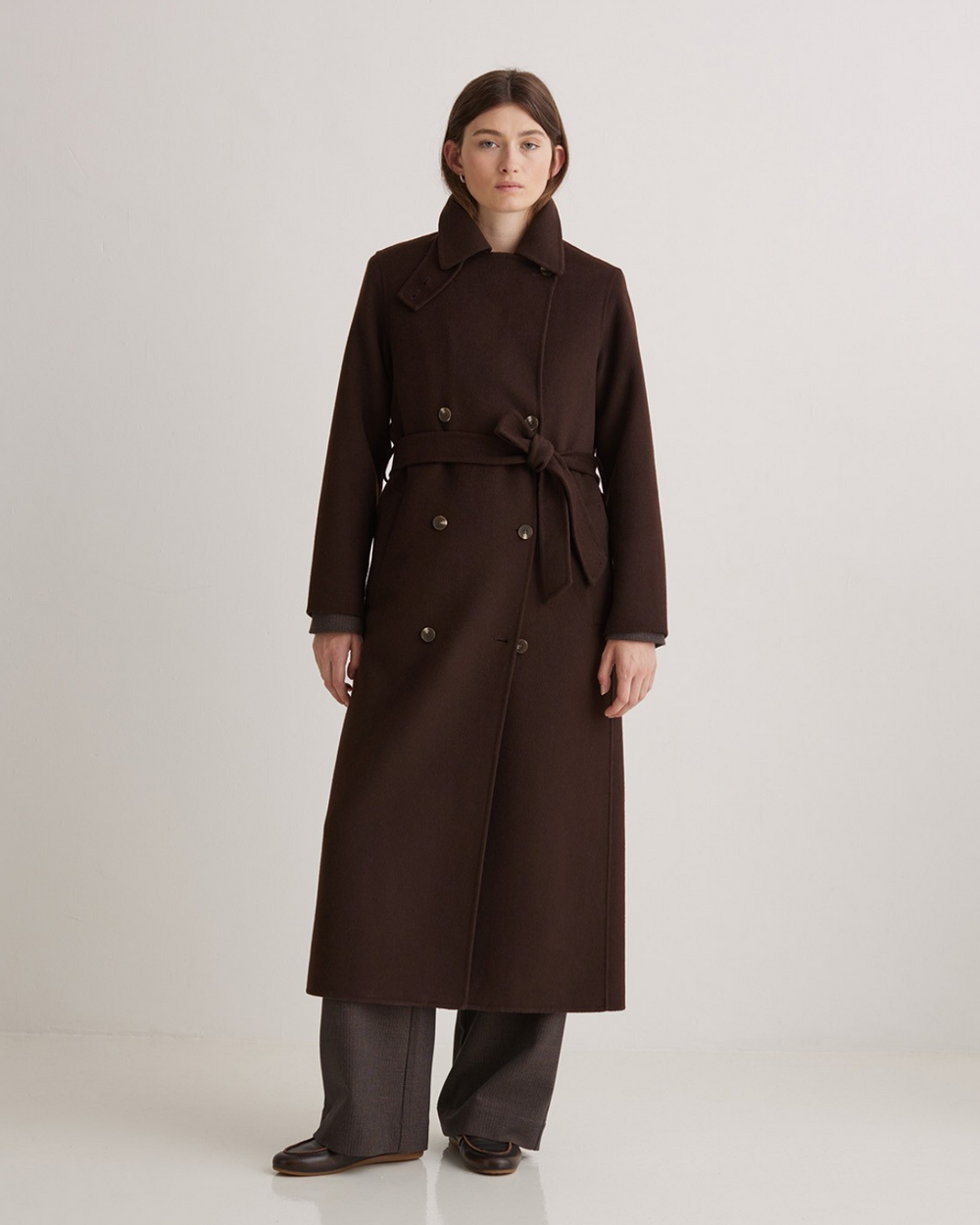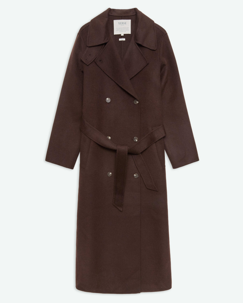 Full length double breasted coat with belt