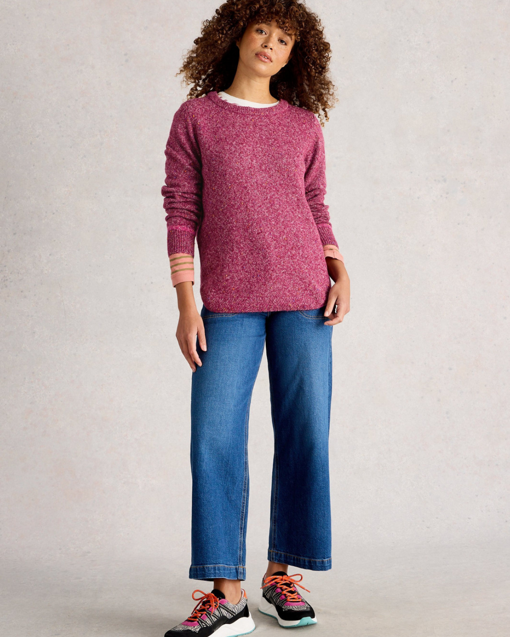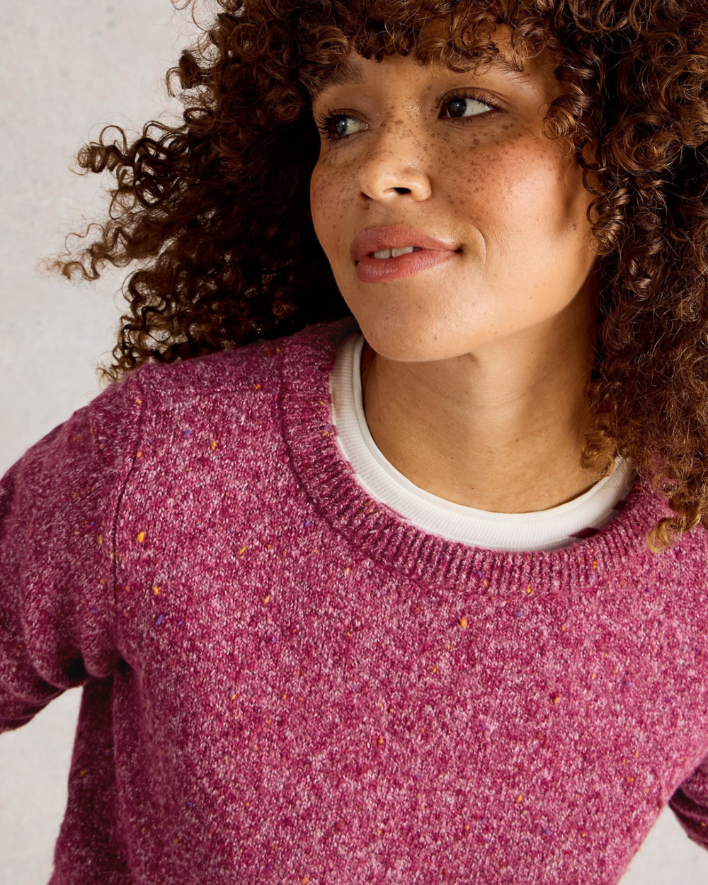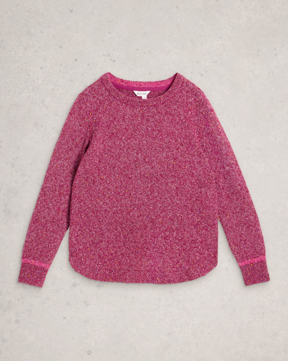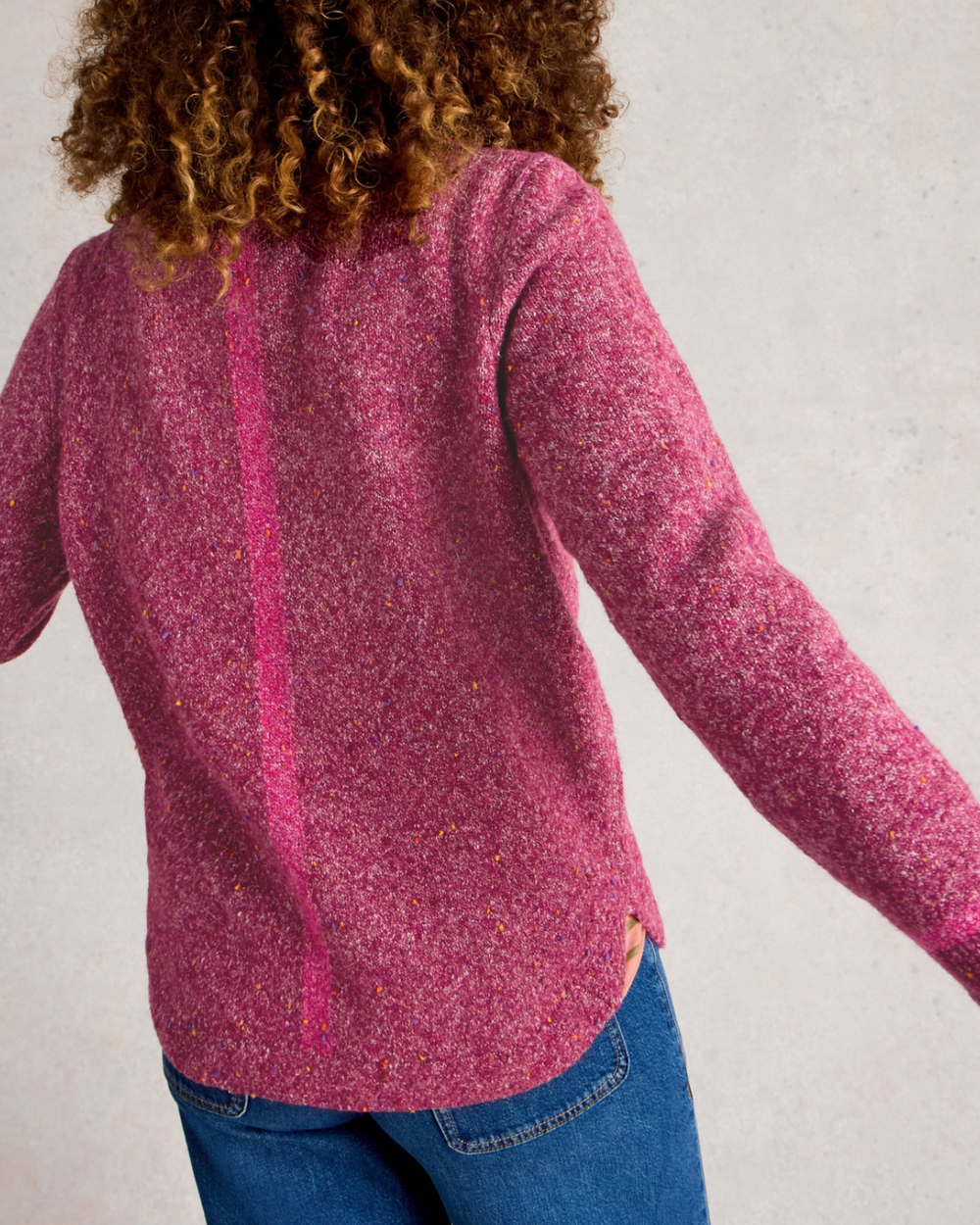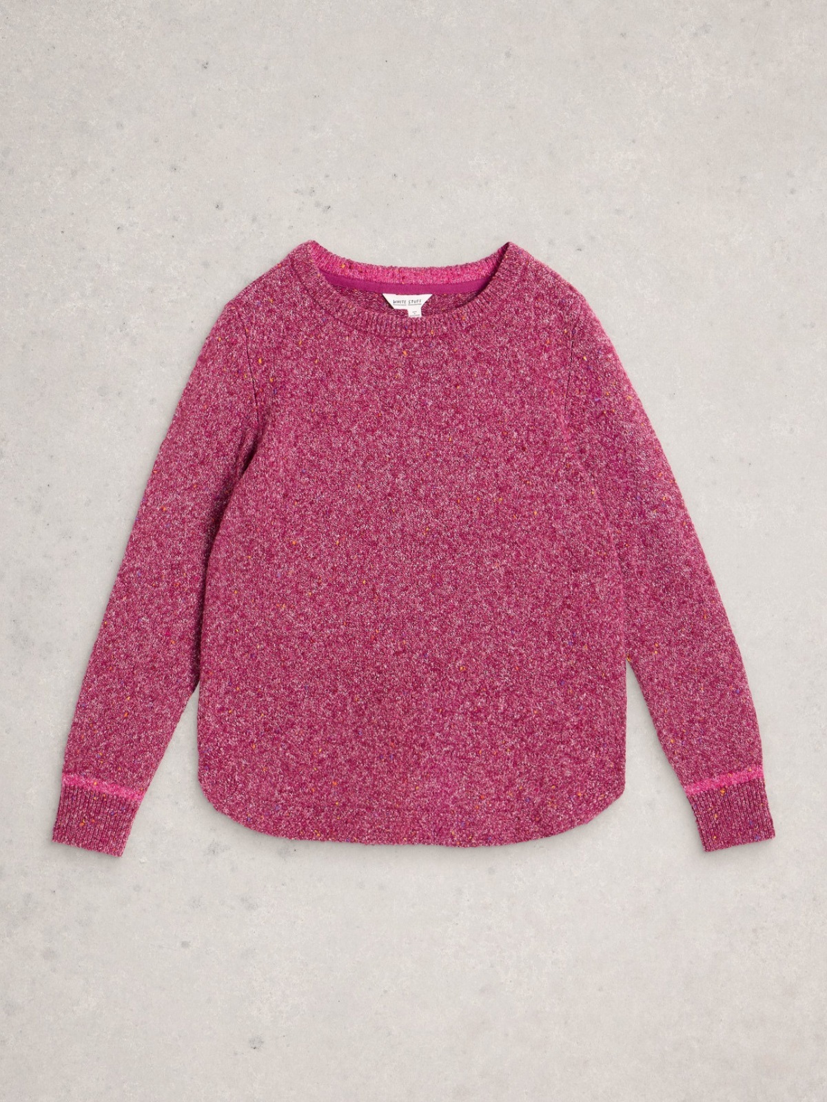A knitted sweater with a neppy pattern. This one is soft and comfortable.