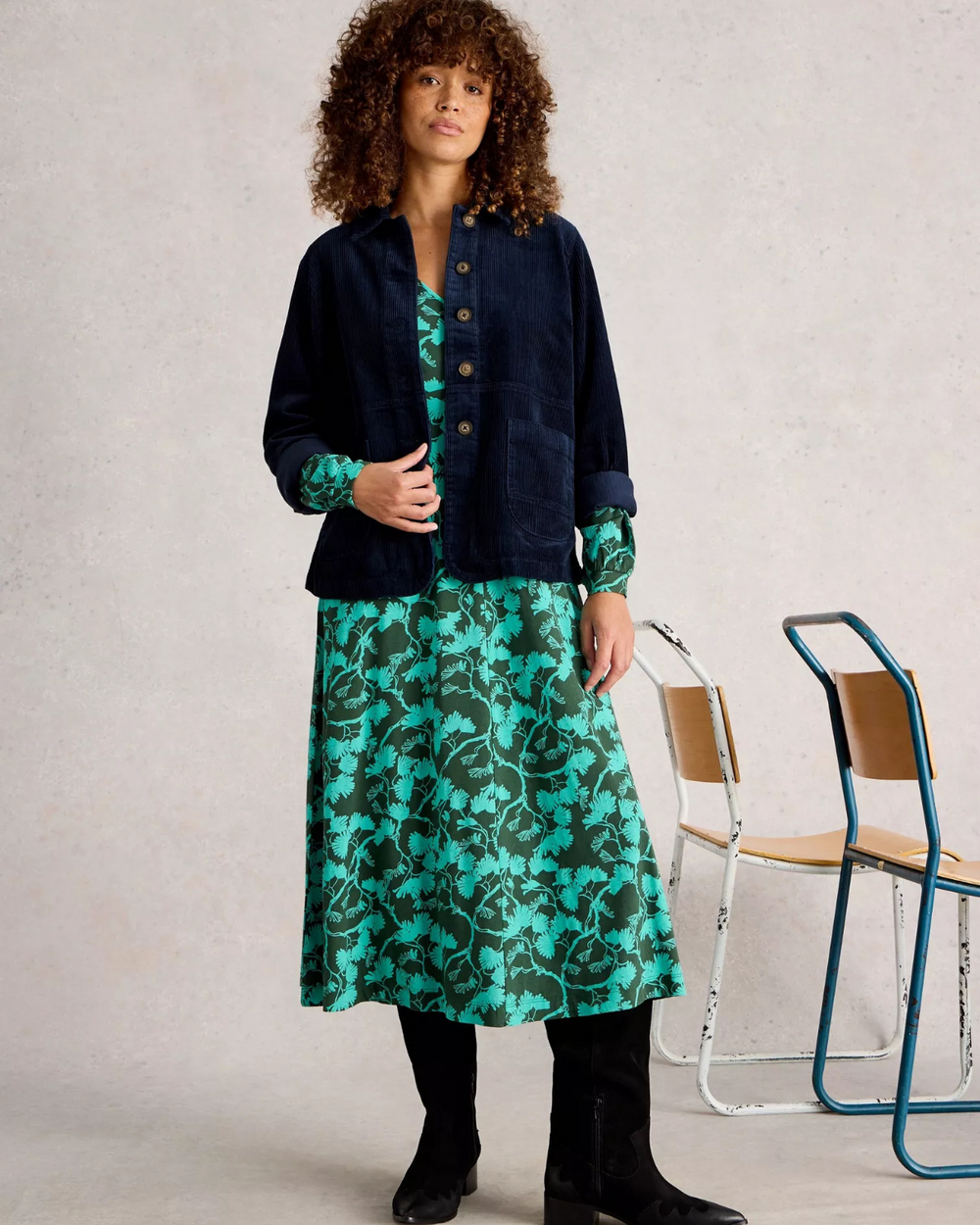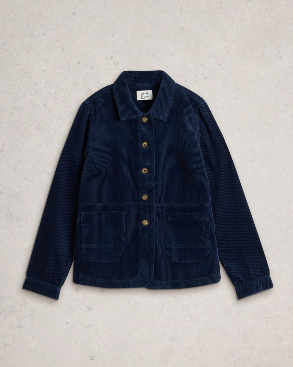 This classic corduroy jacket is made from soft organic cotton. It has long sleeves.