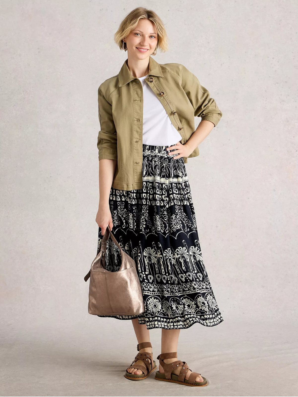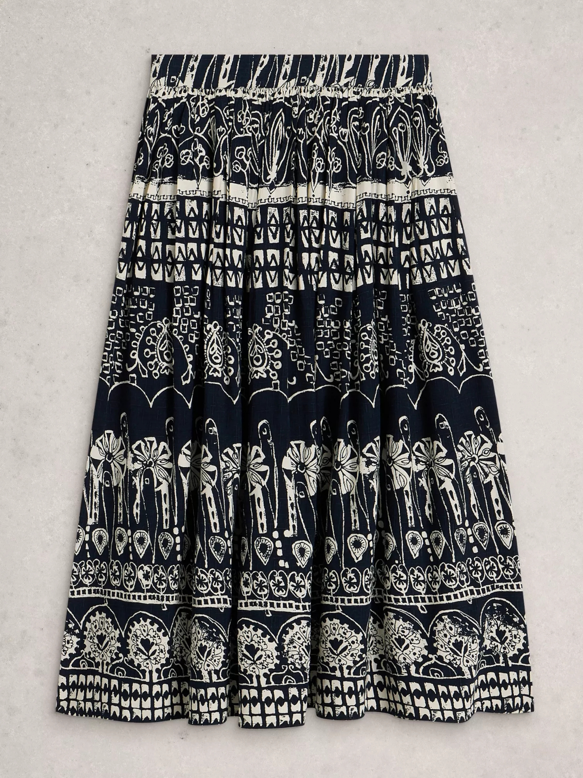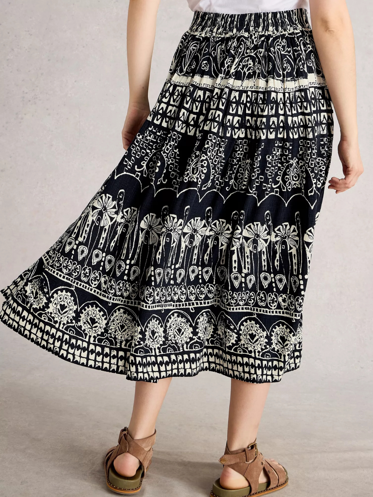 Midi-length printed skirt. Elastic waistband at the back. Exclusive White Stuff print.