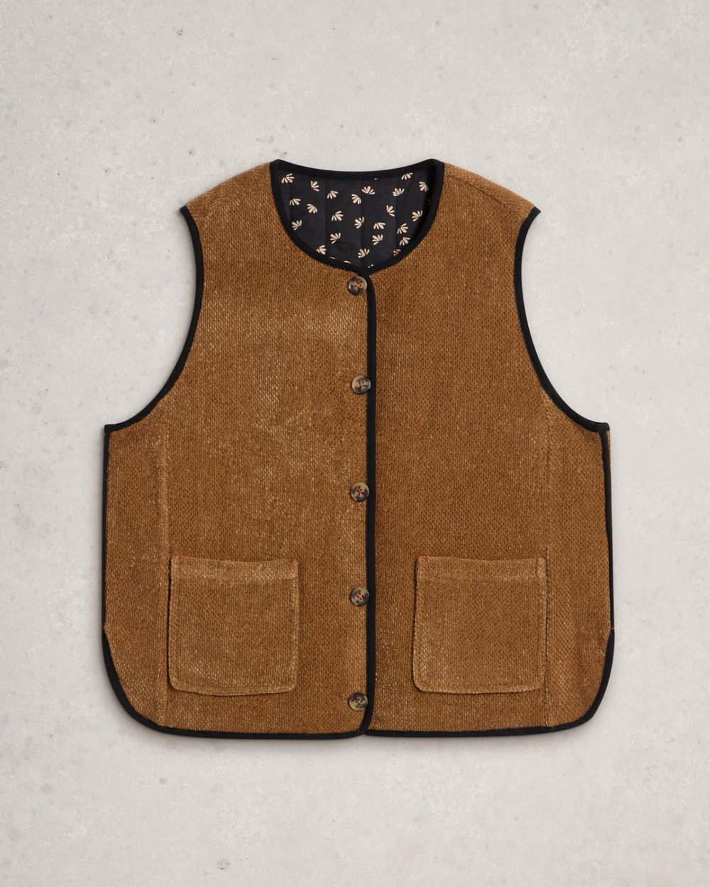 Practical reversible gilet to wear over a dress or the top of your choice.