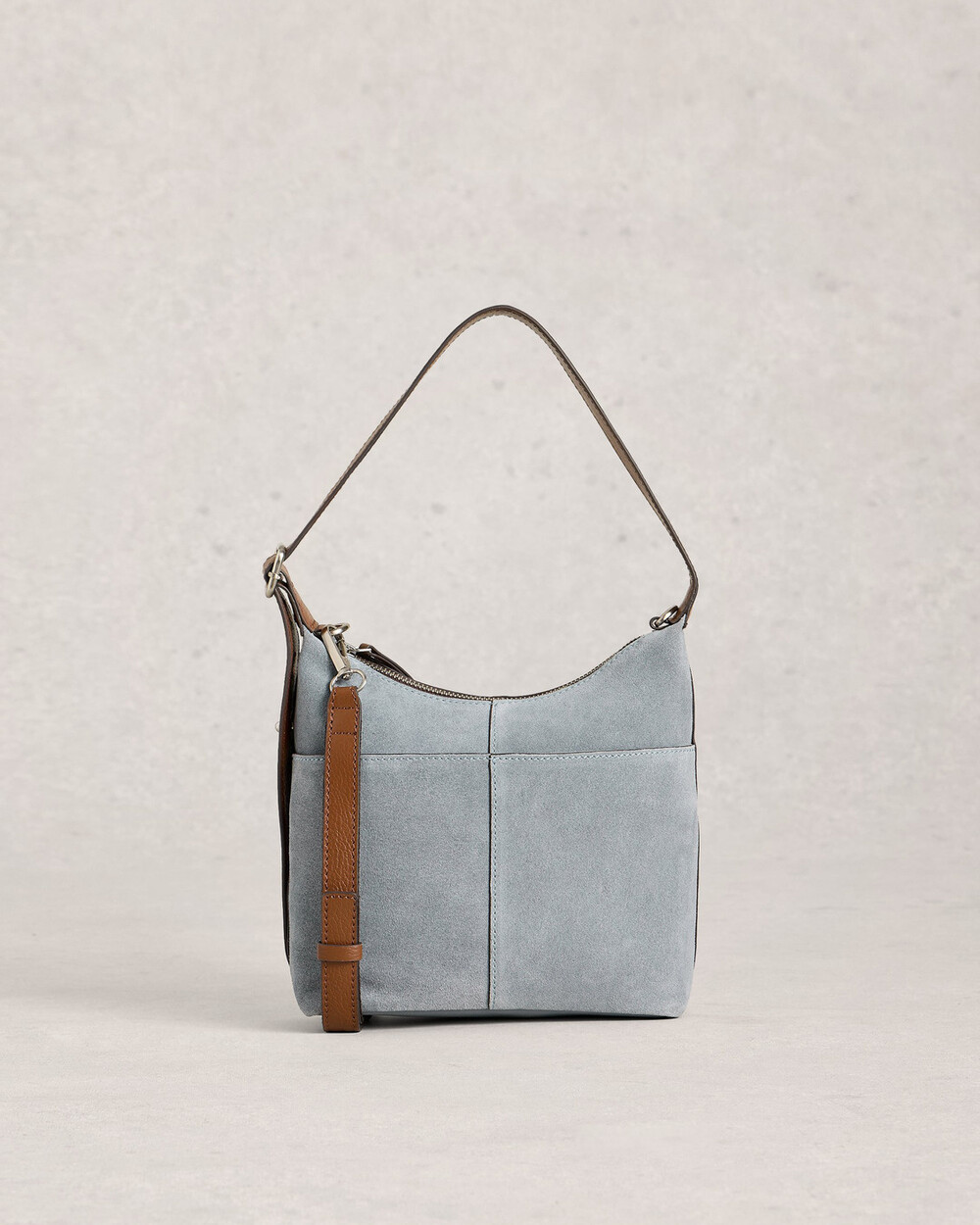 Leather crossbody handbag with detachable crossbody strap.