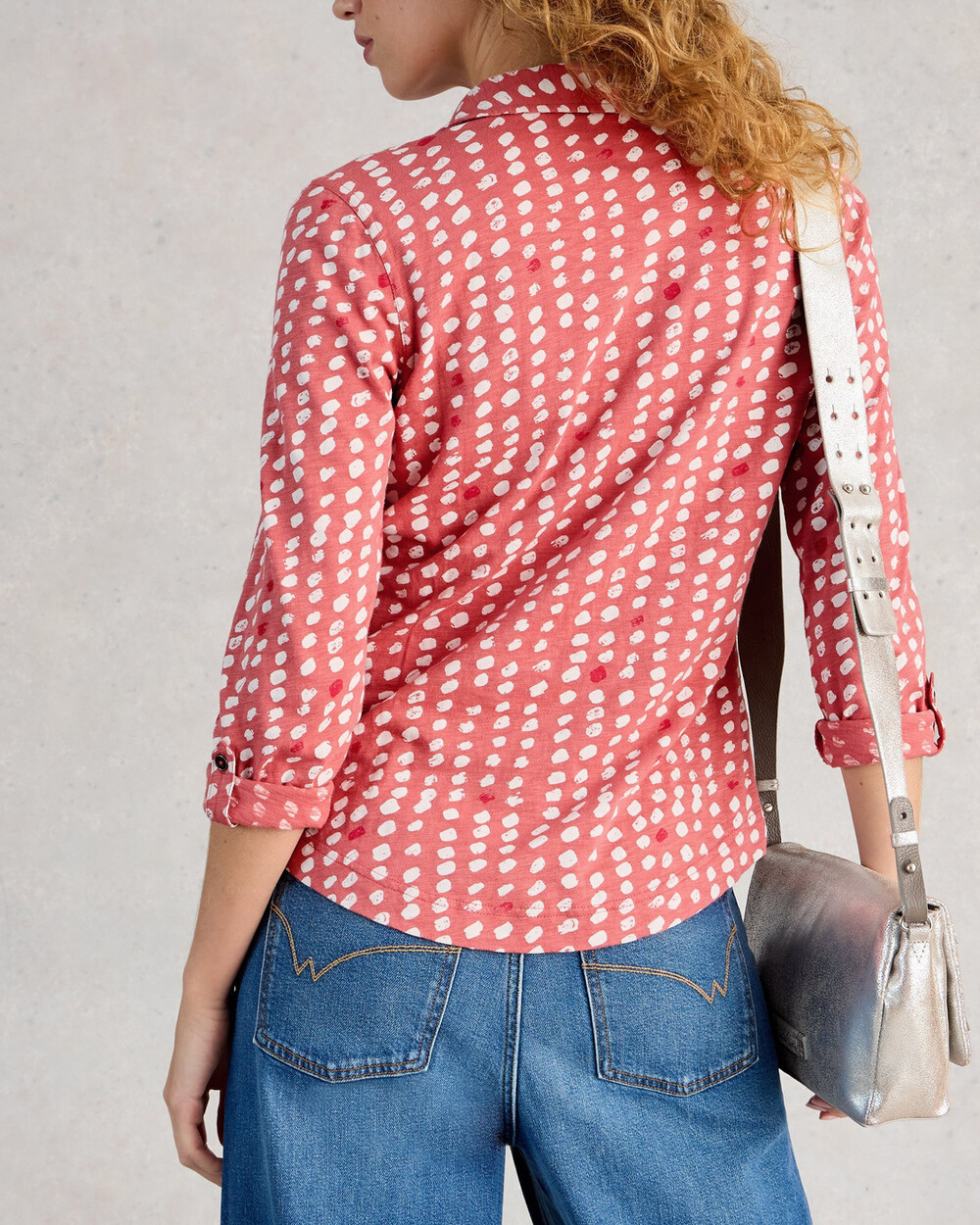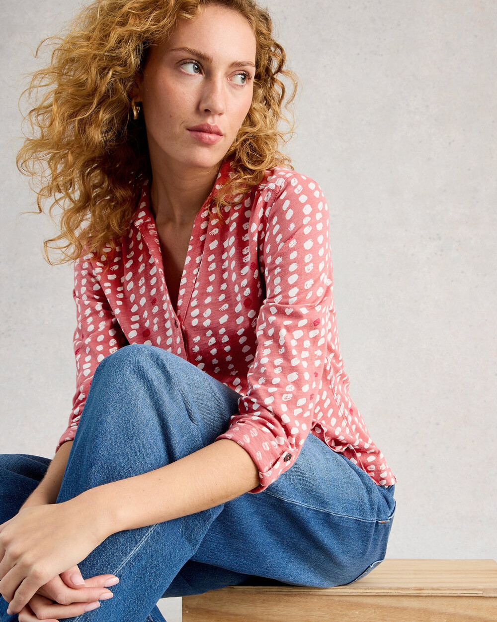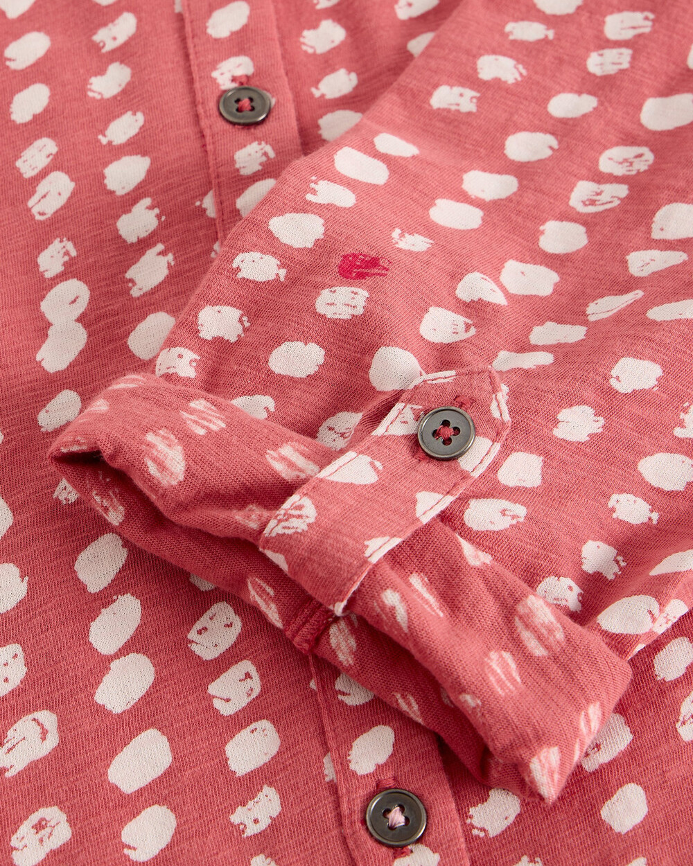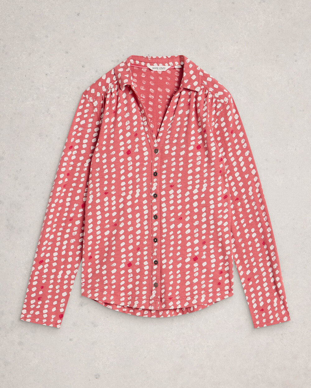 Long sleeve printed v-neck button up jersey shirt. White Stuff exclusive print.