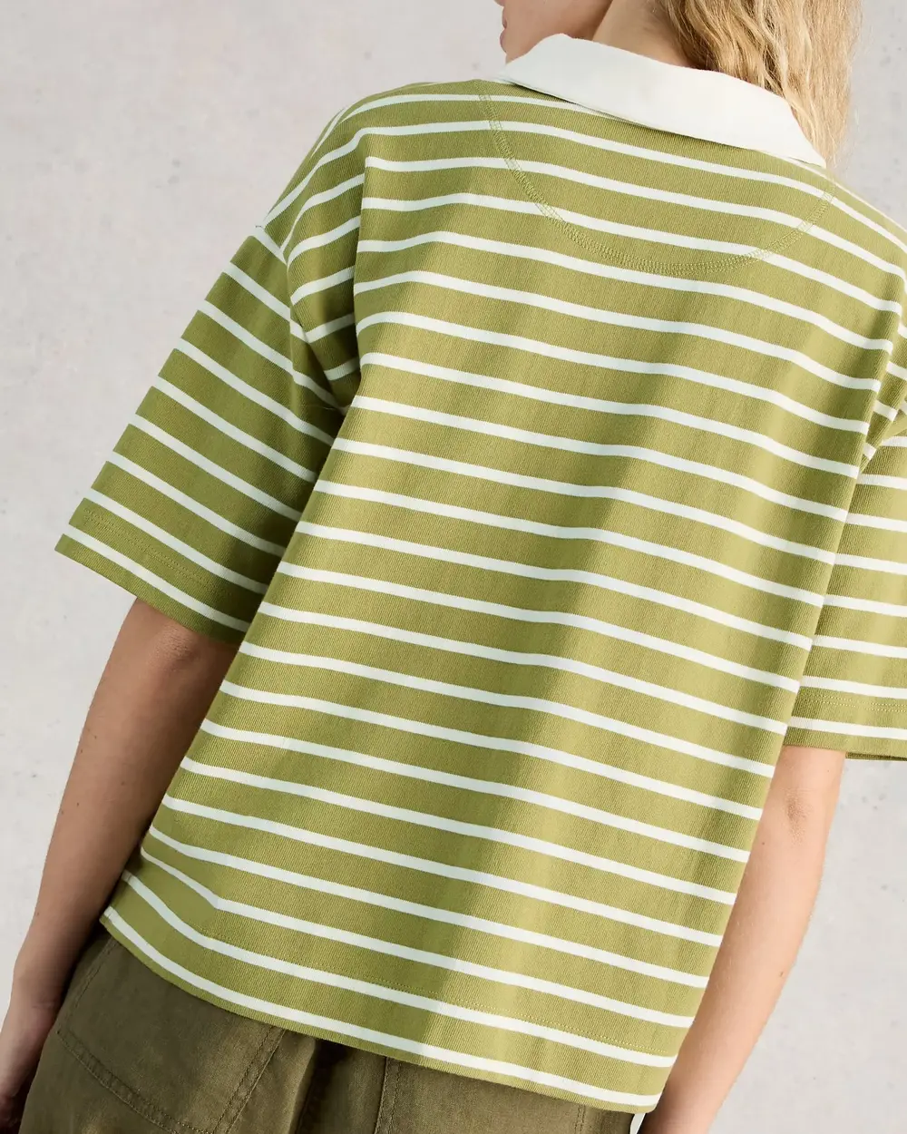 Short sleeved striped rugby style top with buttons