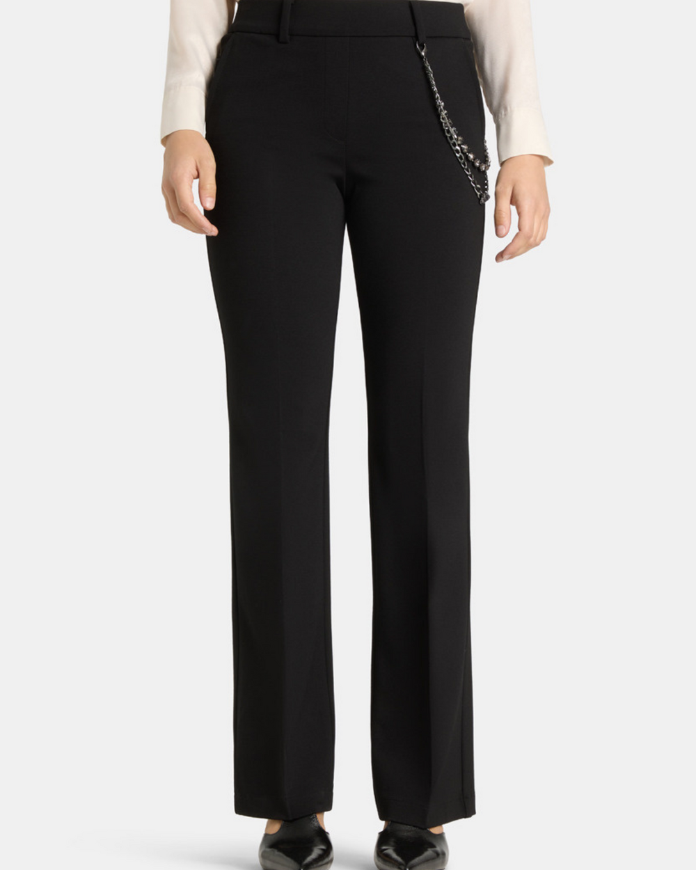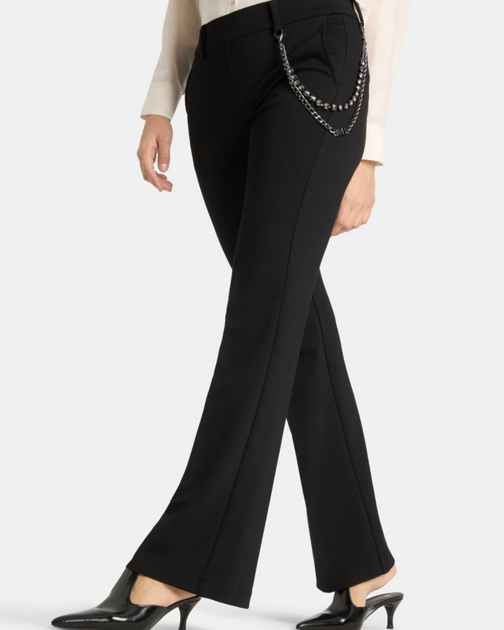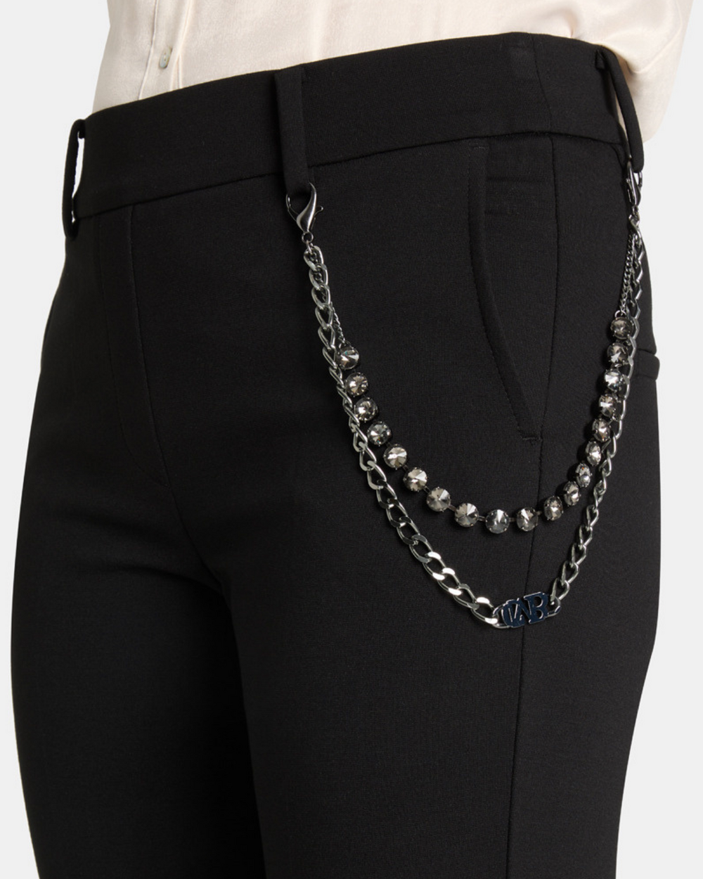 Jersey pull on flared hem pant with detachable crystal and chain ornament