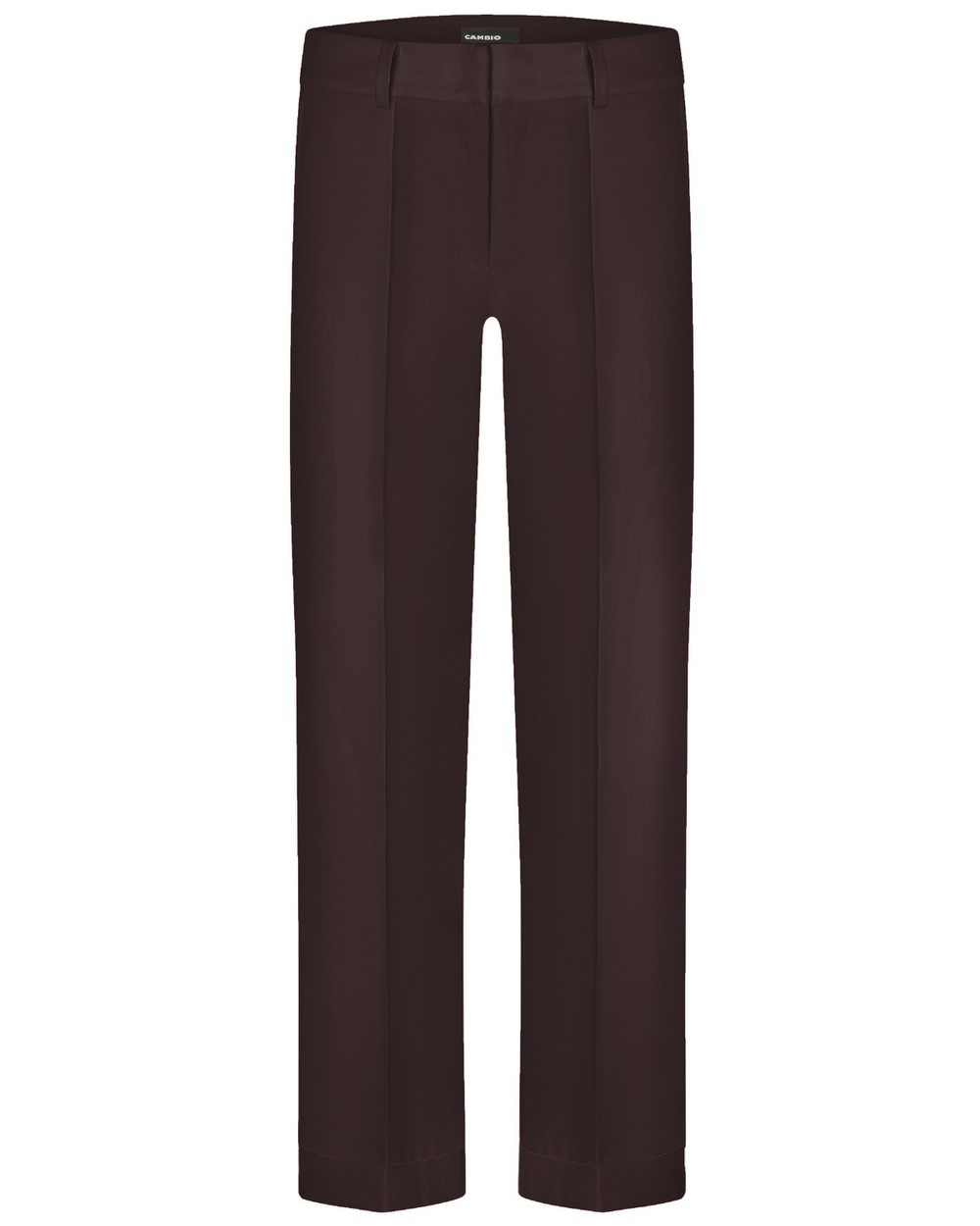 Cuffed trouser with wide contoured waistband and diagonal pockets