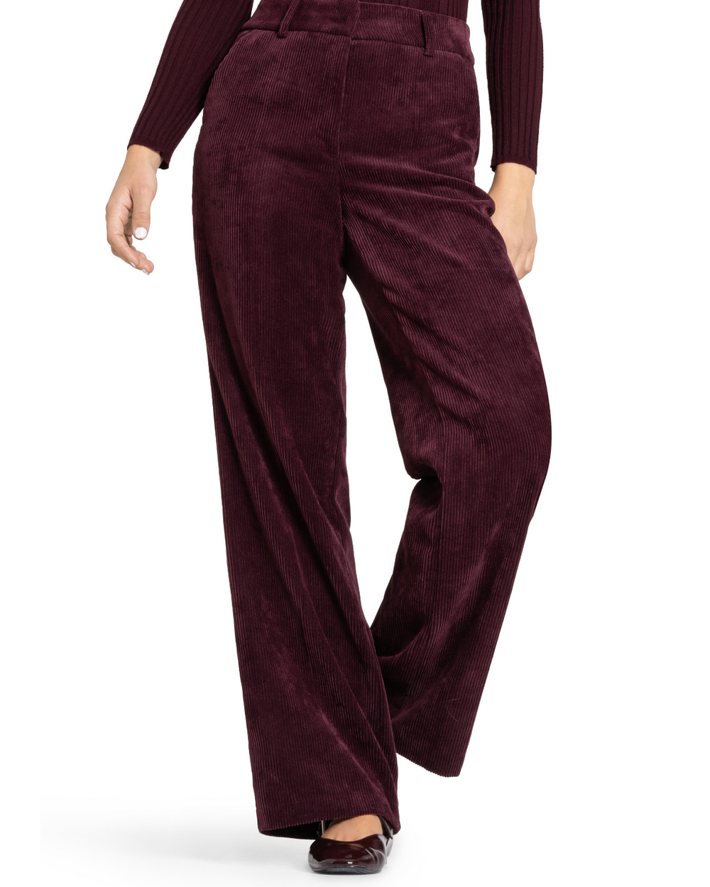 A-line drapey wide wale cord pant with slash pockets