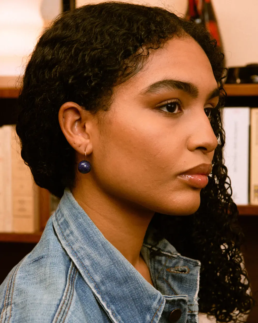 14mm round Lapis Lazuli stone drop earring with integrated gold-filled fish hook.