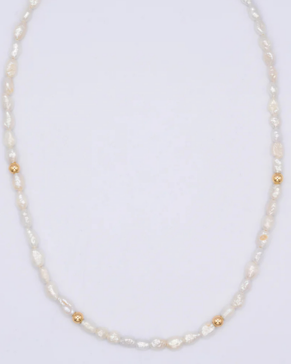 15" freshwater pearl necklace with 4mm gold-filled beads (with a 3" extender).