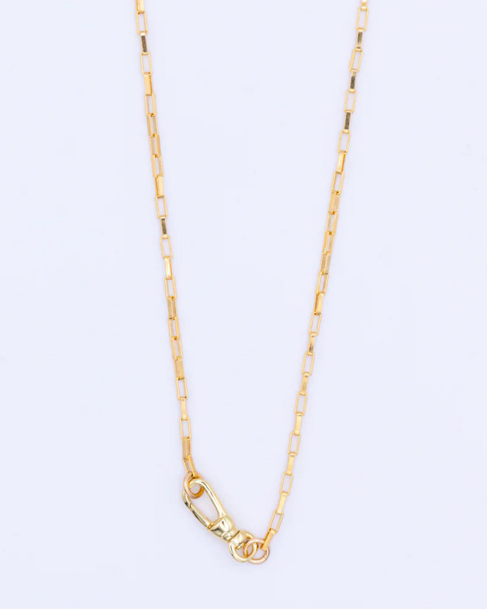 18" gold-filled, elongated box chain necklace with front swivel closure.