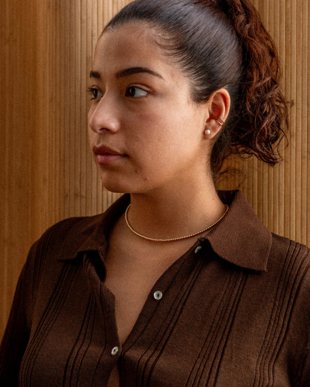15" necklace with 3mm gold-filled beads.  With 3" extender.