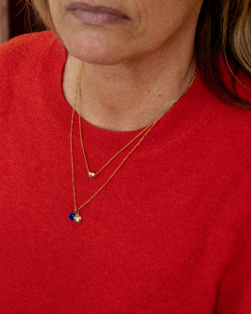 18" gold-filled figaro chain necklace with two charms. With a 2.5" extender.