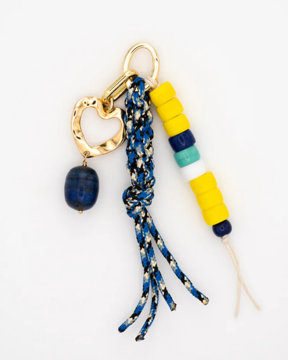 Bag charm with blue multi paracord, lapis lazuli stone and glass beads.