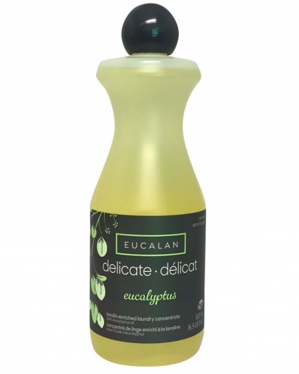 Eucalyptus Delicate Wash is Eucalan’s original scent. First introduced in 1989, it is scented using essential oil of eucalyptus. Eucalyptus oil is a natural moth and flea inhibitor, so use Eucalan Eucalyptus regularly on woolens and particularly before storing them for the season. The lanolin enriched formula helps to naturally condition fibres and keep static away. Use on all your delicates like sweaters, lingerie, hosiery, comforters, down jackets, bathing suits, and baby items. This fresh, clean scent is an excellent unisex choice.