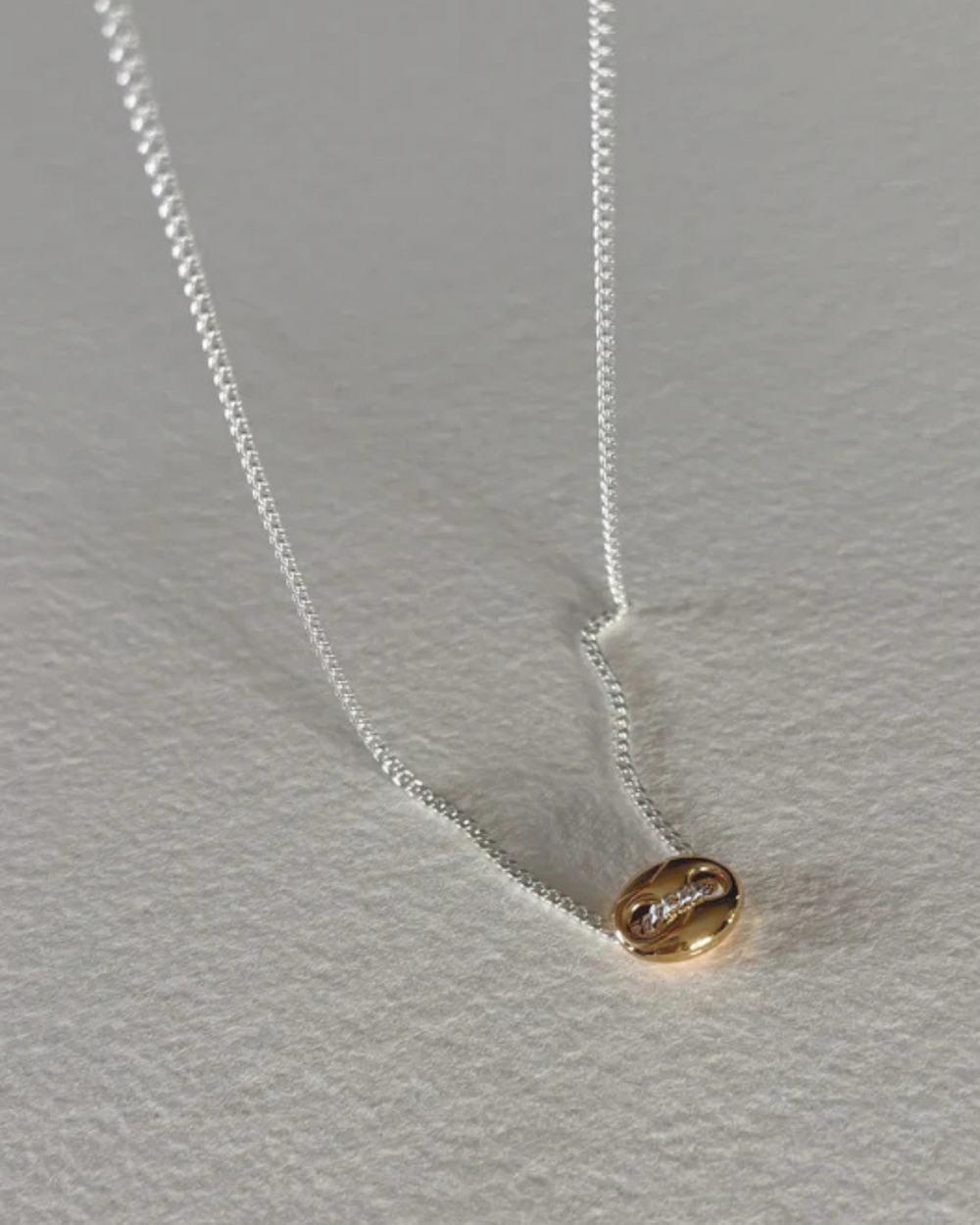 Materials: 925 sterling silver (2mm) curb chain with 14k gold plated coffee bean pendant