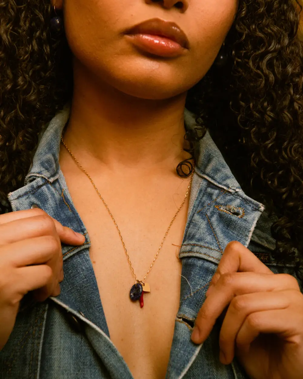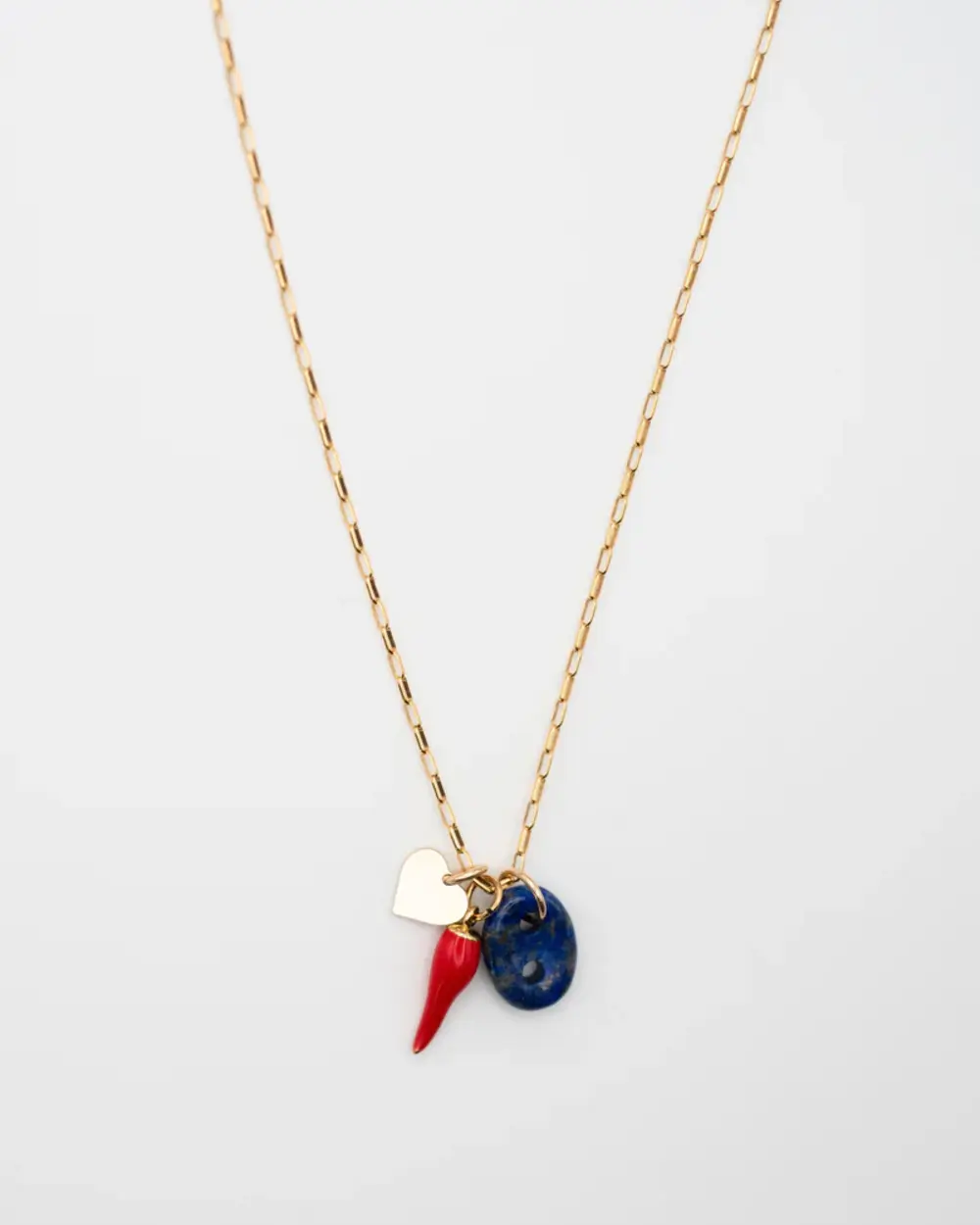 18" gold-filled, elongated oval link chain necklace with 3 charms: