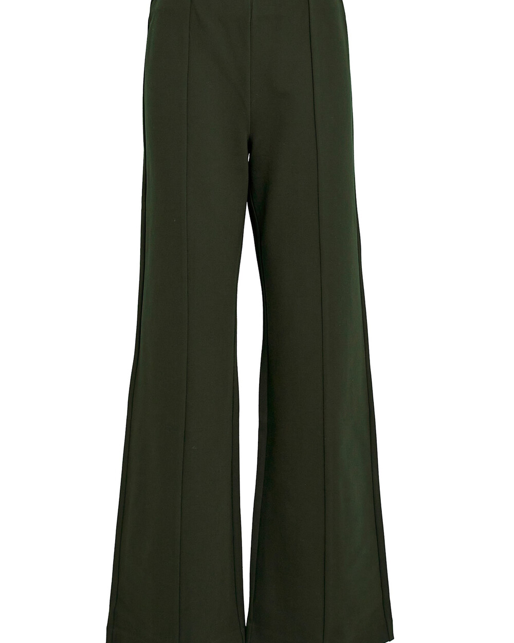 Wide leg pant with a high rise, elastic waistband and flattering seams at the front, made of a soft viscose blend jersey.