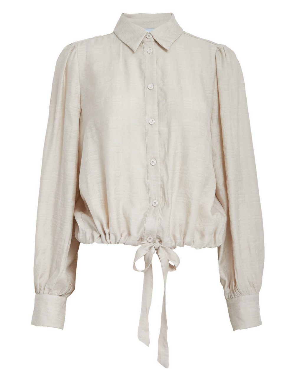 Relaxed fit collared shirt with tie detail at the hem, made of a structered viscose blend.