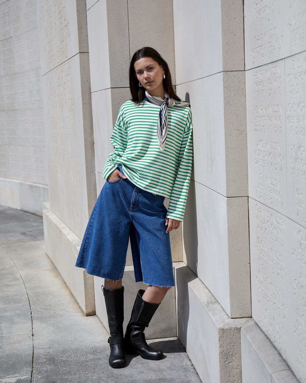 Knee length wide leg denim shorts with a high rise, made of pure cotton and finished with a raw edge at the leg hem. Pair it back to our matching MSKADDI CROPPED SHIRT to complete the look!