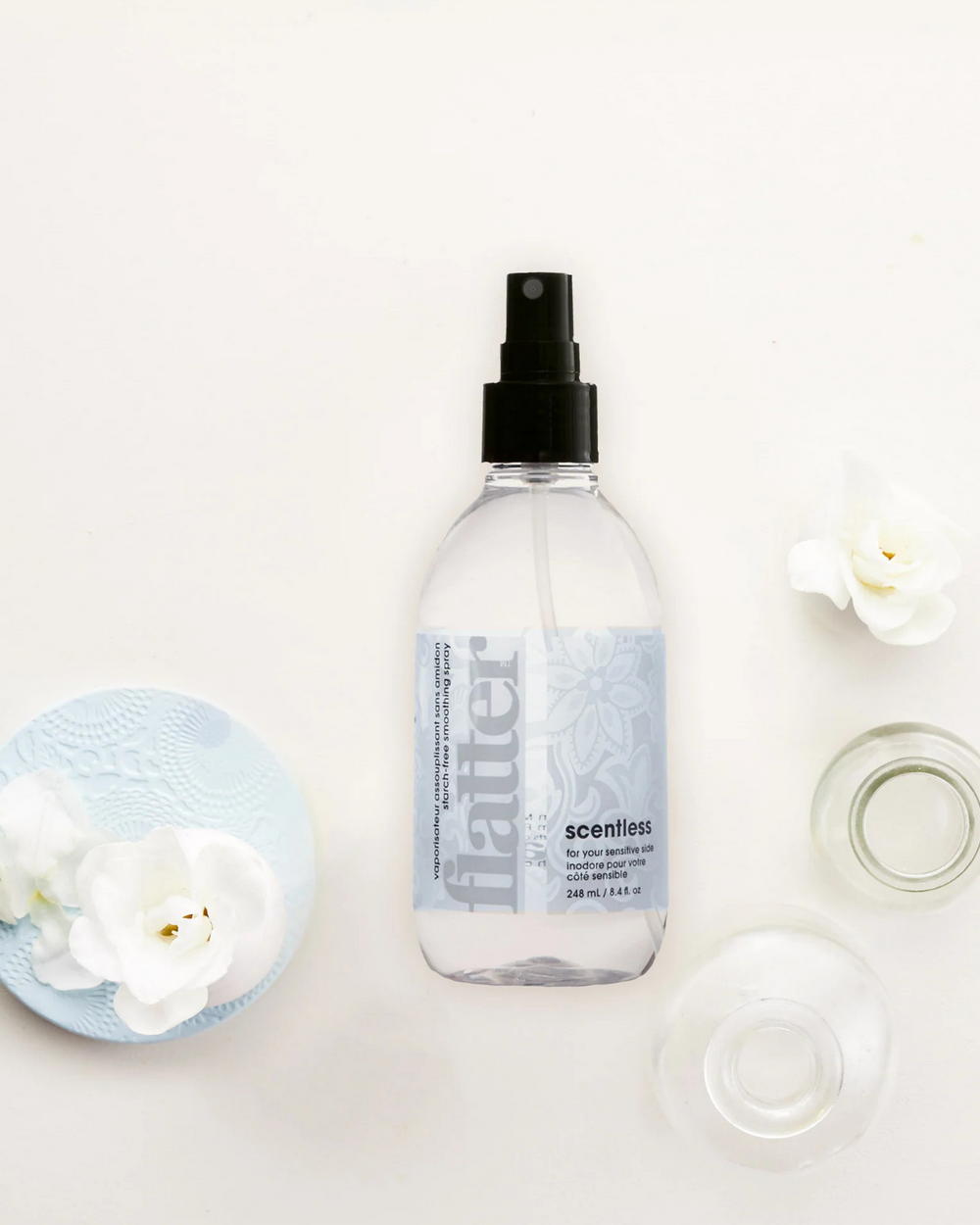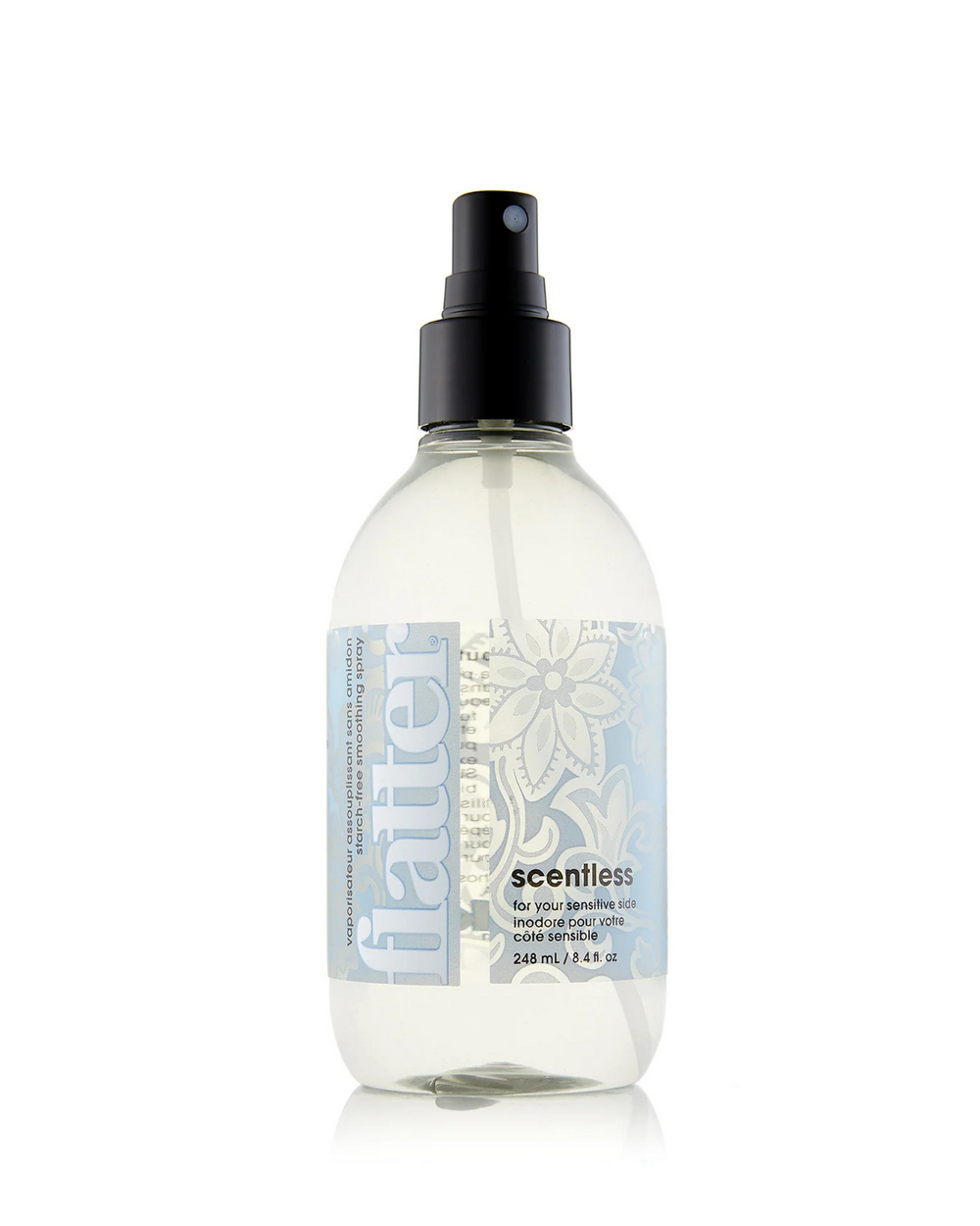 Smooth operator. Relax wrinkles and banish creases with Flatter. This starch-free ironing & smoothing spray freshens fabrics, leaving them sleek, soft, and static-free.